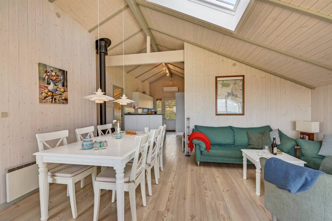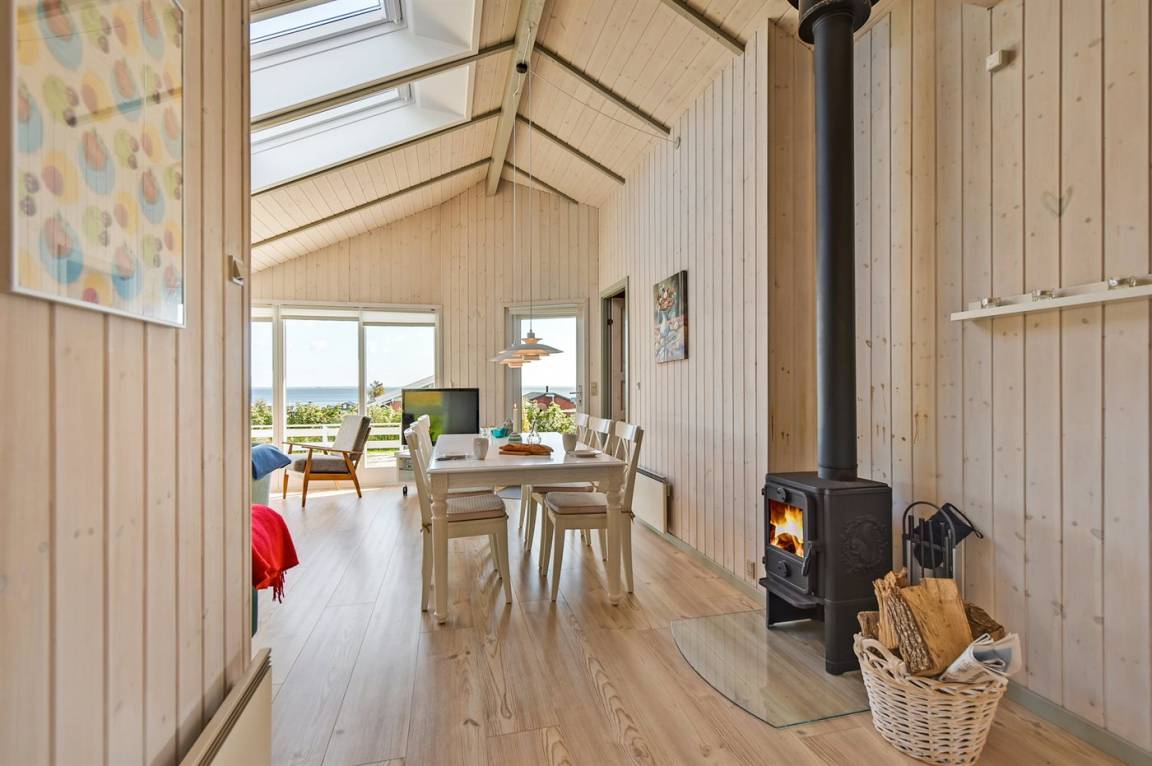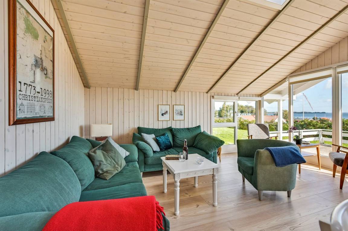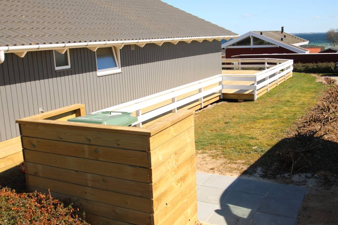 PANORAMA-MEERESBLICK! Wunderschönes Ferienhaus aus Holz mit Whirlpool und Sauna, 2000 gebaut und 2013 letztens mit u. a. neuer Küche renoviert. Das Haus ist auf einem schönen Gartengrundstück gelegen, nur 150 m von kinderfreundlichem Sandstrand entfernt. Die Wände und Decken sind mit rustikalem Kiefernholz verkleidet. Schönes Badezimmer mit 2 Pers. Whirlpool, beheiztem Fliesenboden, Duschnische, Waschmaschine und Wäschetrockner sowie direktem Zutritt zur Sauna des Hauses. Gut ausgestattete Küche u. a. mit Warmluftofen, Mikrowelle und Geschirrspüler. Das hübsch möblierte Wohnzimmer mit Meeresblick enthält Kaminofen, Stereoanlage mit CD-Spieler, Video, DVD-Spieler und Kabel-TV. Ferner kostenlose, kabellose Internetverbindung vorhanden (Computer ist mitzubringen). Kinderhochstuhl und Kinderbett für die Kinder. Offenes und überdachtes Terrassenareal mit Gartenmöbeln und Liegestühlen. Schaukel und Carport vorh. Ein wirklich herrliches Haus mit einer attraktiven Lage im südlichen Teil von Dänemark. Das gemütliche und naturschöne Feriengebiet Binderup Strand mit Hügeln und Tälern liegt am Kleinen Belt. Sowohl vom Haus als auch vom Grundstück haben Sie Panoramaaussicht über das Wasser bis nach Fünen. Ein Pfad führt zum guten und sehr kinderfreundlichen Sandstrand mit Badesteg. Auf den nahe liegenden Campingplätzen gibt es Minigolf, Außenschwimmbad sowie Kiosk. 100 m zu Spielplatz. Das Gebiet lädt zum Wandern ein, z. B. führt ein Pfad durch den Wald zu dem höchsten Punkt Südjütlands, Skamlingsbanken, mit einer phantastischen Aussicht und einem Restaurant. Gute Einkaufsmöglichkeiten in der Großstadt Kolding, die auch ein reiches Kulturleben und viele Aktivitätsmöglichkeiten anbietet. Die kleinere Stadt Christiansfeldt ist für seine Lebkuchen berühmt.
