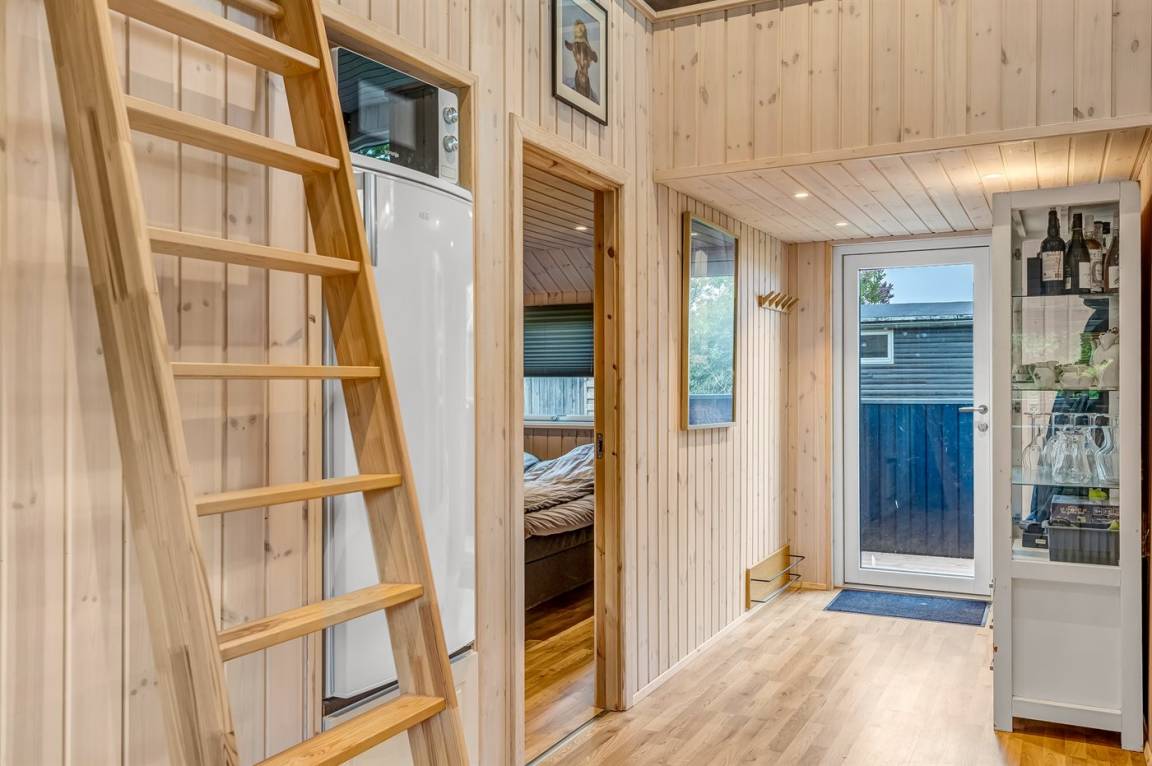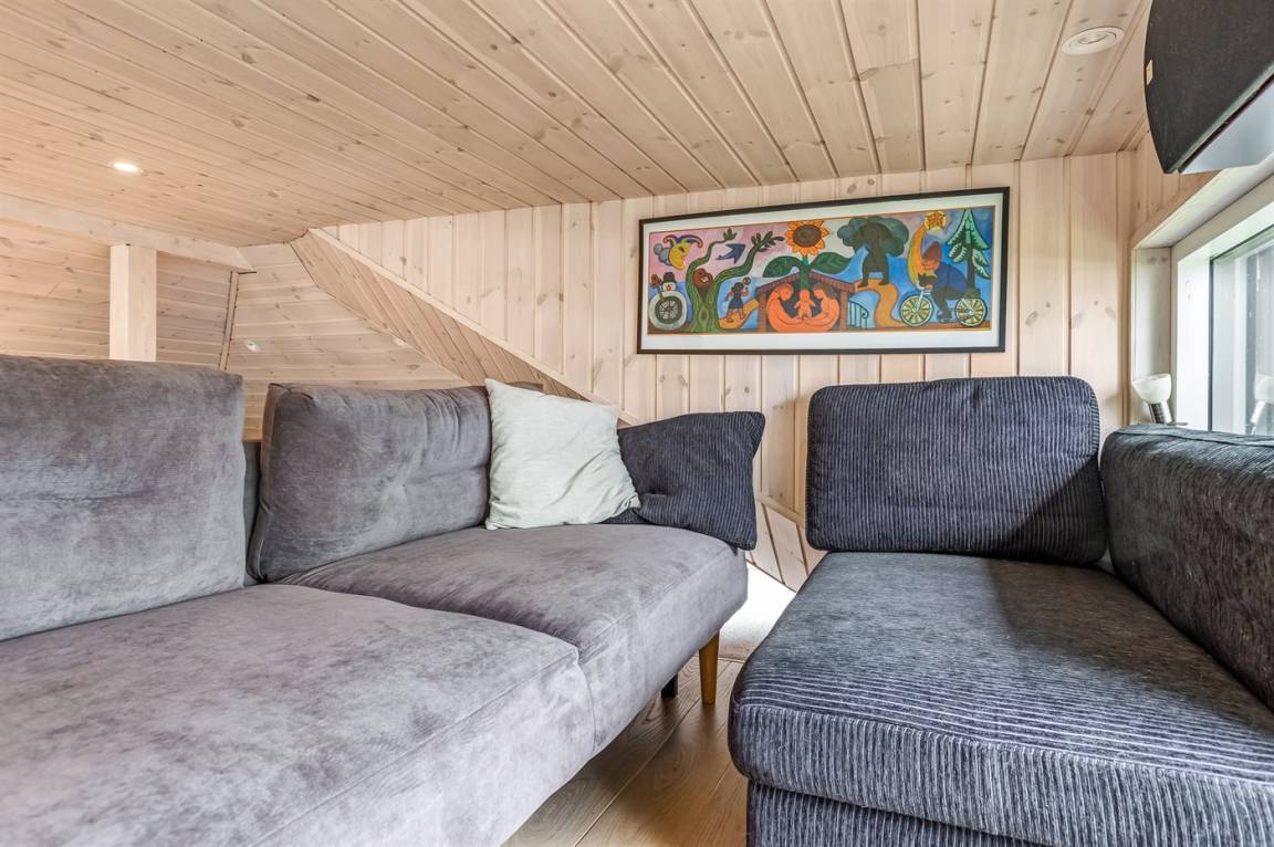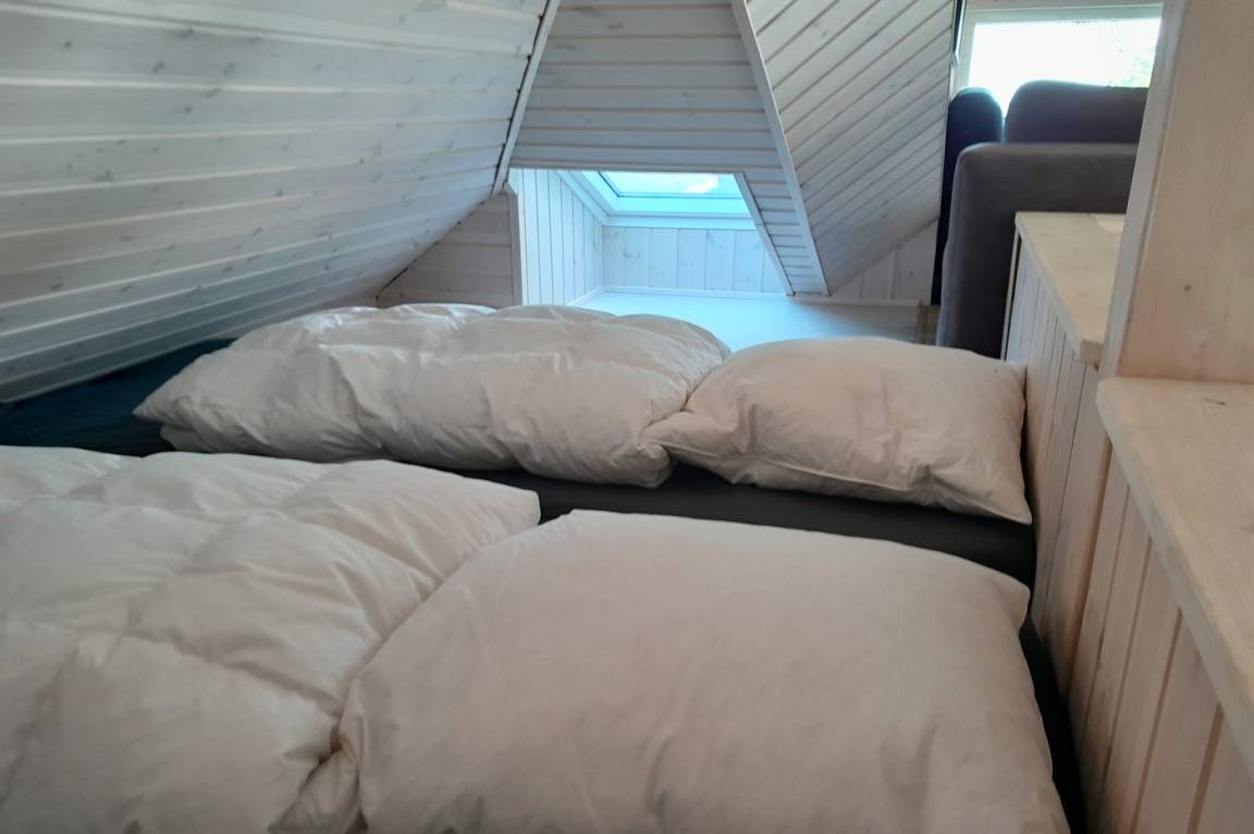 Vom Küchenbereich und den Schlafzimmern führt eine weitere kleine Treppe in einen stilvollen Wohnraum mit Essbereich, TV-Ecke und direktem Zugang zur Terrasse. Das Haus verfügt zudem über zwei offene Obergeschosse: eines beim Wohnraum und eines mit besonders guter Deckenhöhe und bequemer Treppe. Insgesamt stehen euch zwei Schlafzimmer und zwei offene Obergeschosse zur Verfügung – jeweils mit zwei Schlafplätzen, wobei eines der Obergeschosse mit einem Doppelbett ausgestattet ist. Es gibt also ausreichend Platz für Familie und Gäste.