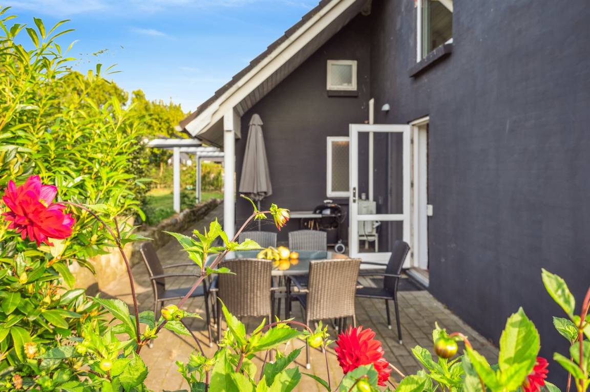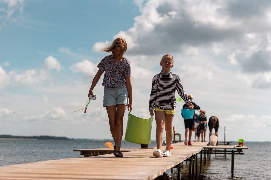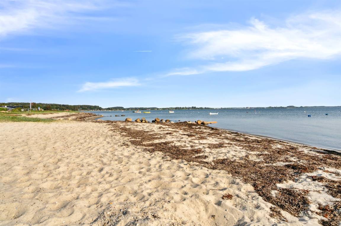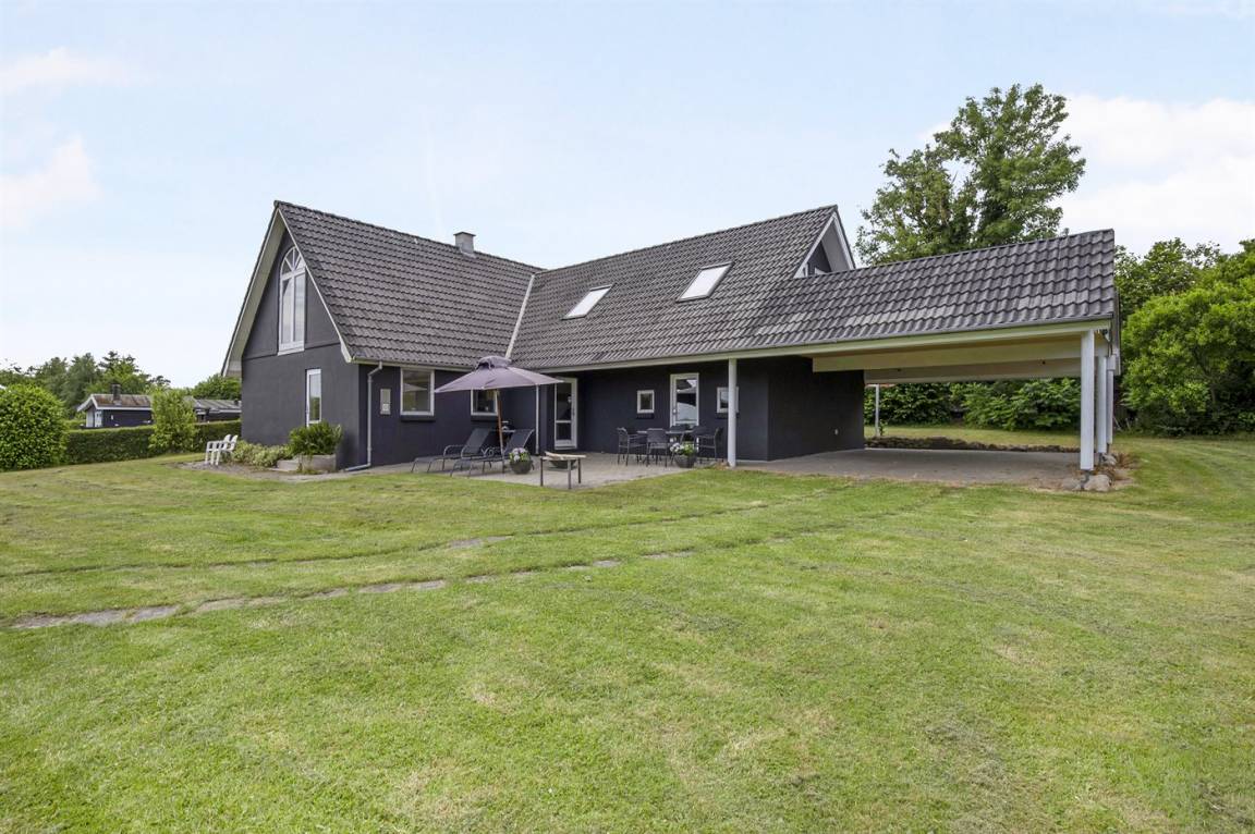 Das Ferienhaus liegt mit Blick auf das Wasser und nur 200 Meter von einem herrlichen Strand zum Baden entfernt.