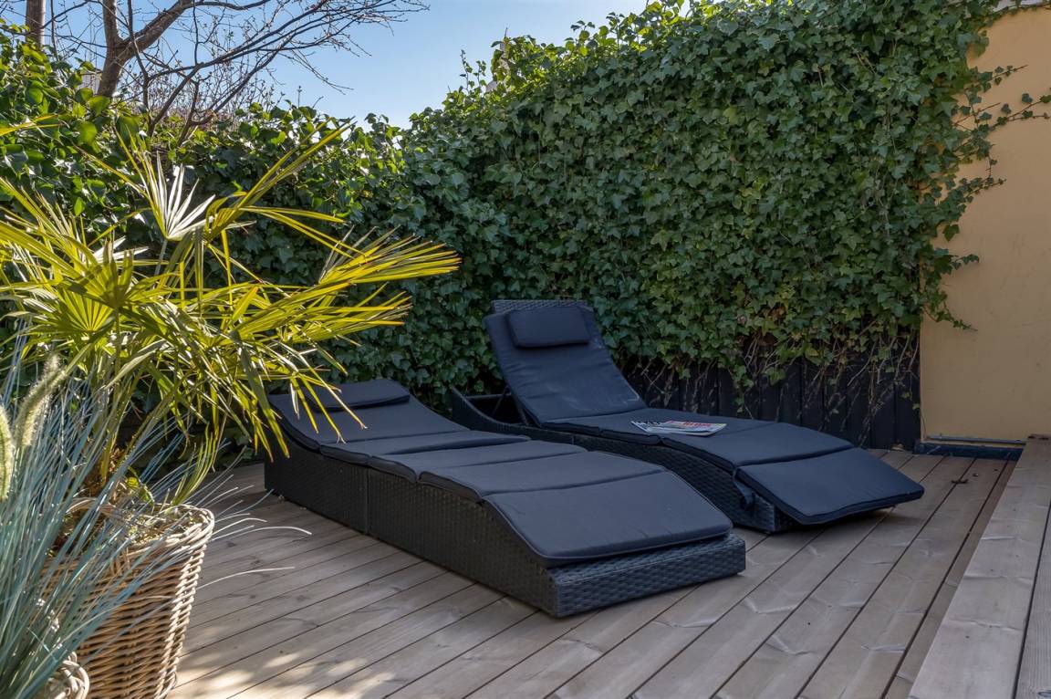 Zu der Ferienunterkunft, die sich gut für die kleine Familie eignet, gehört auch ein ungstörter Innenhof.
