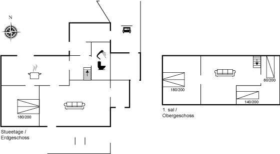 SchlafverhältnisseDie Schlafplätze verteilen sich auf 3 Schlafräume. 4 Schlafplätze in Doppelbetten. 2 Schlafplätze in Einzelbetten. Ferner steht ein Kinderbett zur Verfügung.