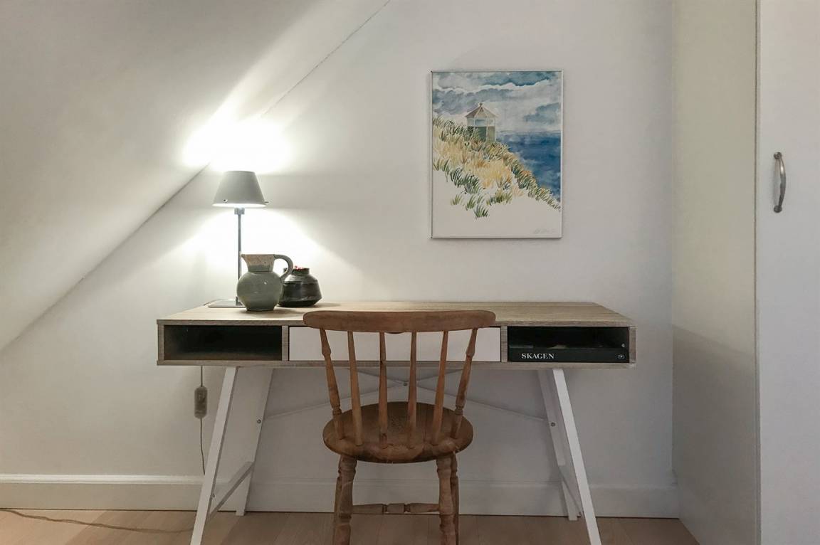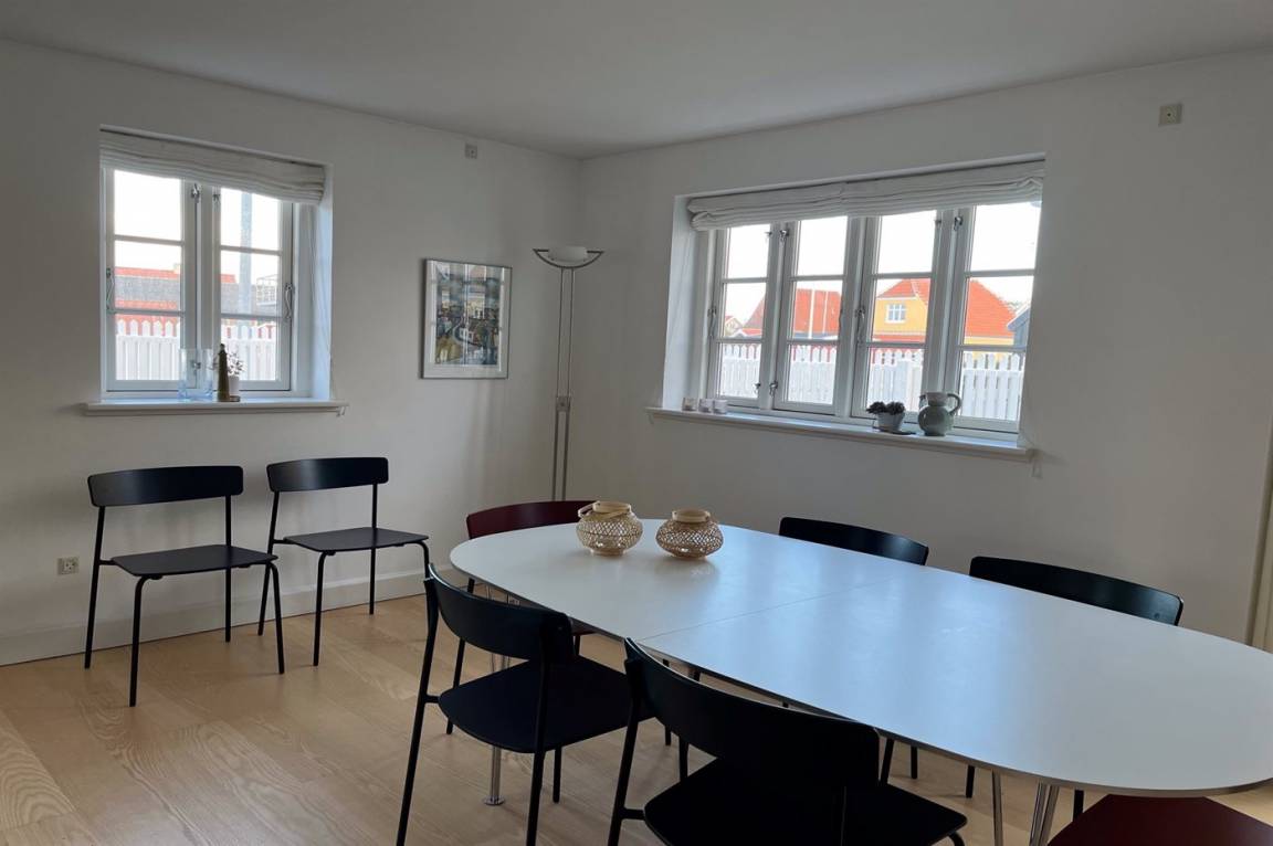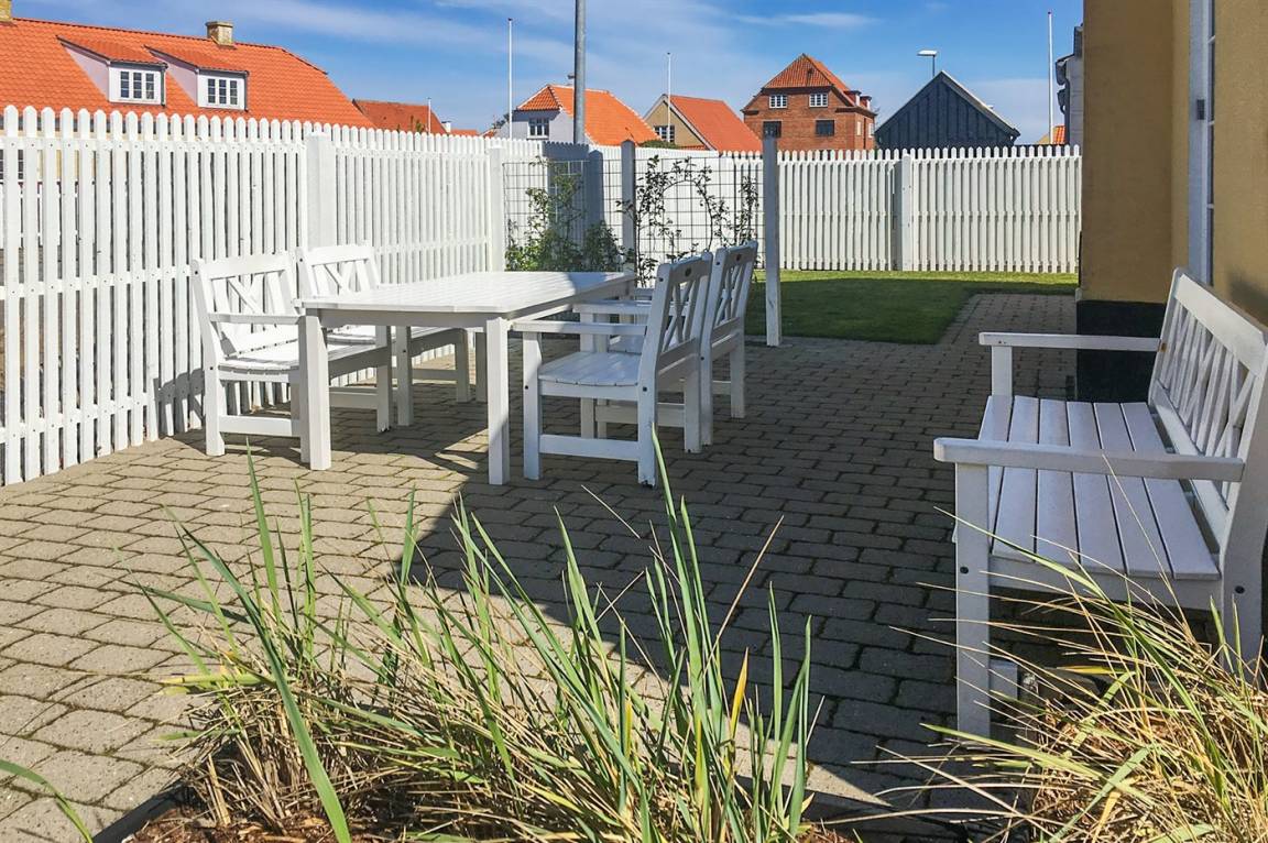 Remisen nr. 1 ist ein ganz entzückendes Stadthaus, 2006 im alten Skagenstil gebaut und 2020 renoviert. Das Haus liegt auf einem ganz unglaublich schönen und völlig abgeschirmten Gartengrundstück - und eignet sich daher vorzüglich für Familien mit Kindern und für diejenigen, die Ihren Hund mitbringen. Es gibt gegen Süden, Osten und Westen gerichtete Terrassen. Die Zentrale Lage des Hauses trägt dazu bei, dass sich die Sehenswürdigkeiten Skagens wie z. B. Brøndums Hotel, Anne und Michaels Anchers Museum, Skagens Museum, Schlachter Munch, die Fußgängerstraße und der Hafen im Gehabstand vom Haus befinden. Das Haus ist besonders funktionell und geschmackvoll eingerichtet. Im Erdgeschoss gibt es eine kleine Eingangshalle, ein großes Badezimmer mit Granitboden, Duschnische, Waschmaschine und Wäschetrockner. Die schicke Küche ist mit u. a. Geschirrspüler, Tiefkühlgerät, Umluftofen und Herd mit Ceran-Feld ausgestattet. Das Wohnzimmer ist geschmackvoll eingerichtet und enthält Kaminofen, DVD-Spieler, TV, Gemeinschaftsantenne, Chromecast und Radio. Im Obergeschoss finden Sie 3 helle Schlafzimmer mit Doppelbett sowie Badezimmer mit Duschnische. Innen sind die Wände weiß gestrichen und die Böden, mit Ausnahme von den Badezimmern, sind mit Holz ausgelegt. In den Badezimmern gibt es Granitböden. Sowohl von der Küche als auch vom Wohnzimmer haben Sie zutritt zu den Terrassen - hier finden Sie Gartenmöbel und einen großen Webergrill.