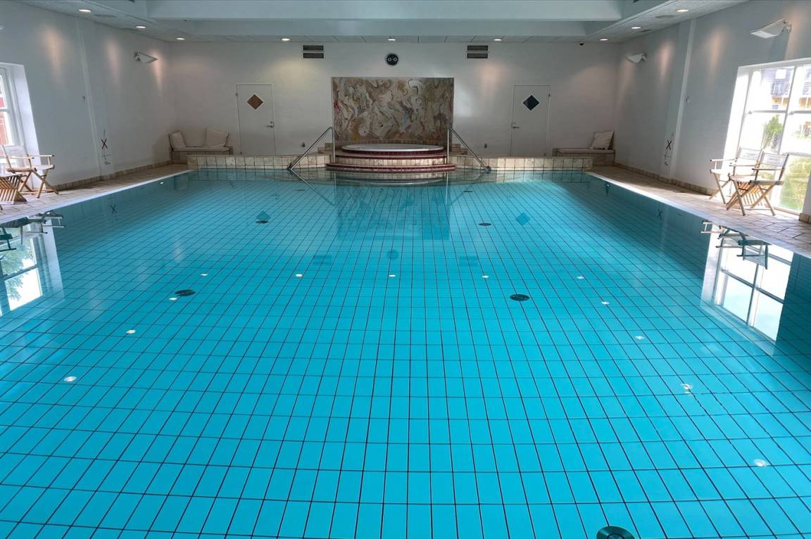 Schöne und geräumige Wohnung im Feriencenter Krøyer's Gl. Skagen mit Zugang zu gemeinsamem Whirlpool, Sauna und Hallenschwimmbad. Verwöhnt eure bessere Hälfte mit einem Besuch im Schwimmbad und Whirlpool. Das Wellnessgebäude von Krøyer's liegt nur wenige Meter von eurer Ferienwohnung entfernt.