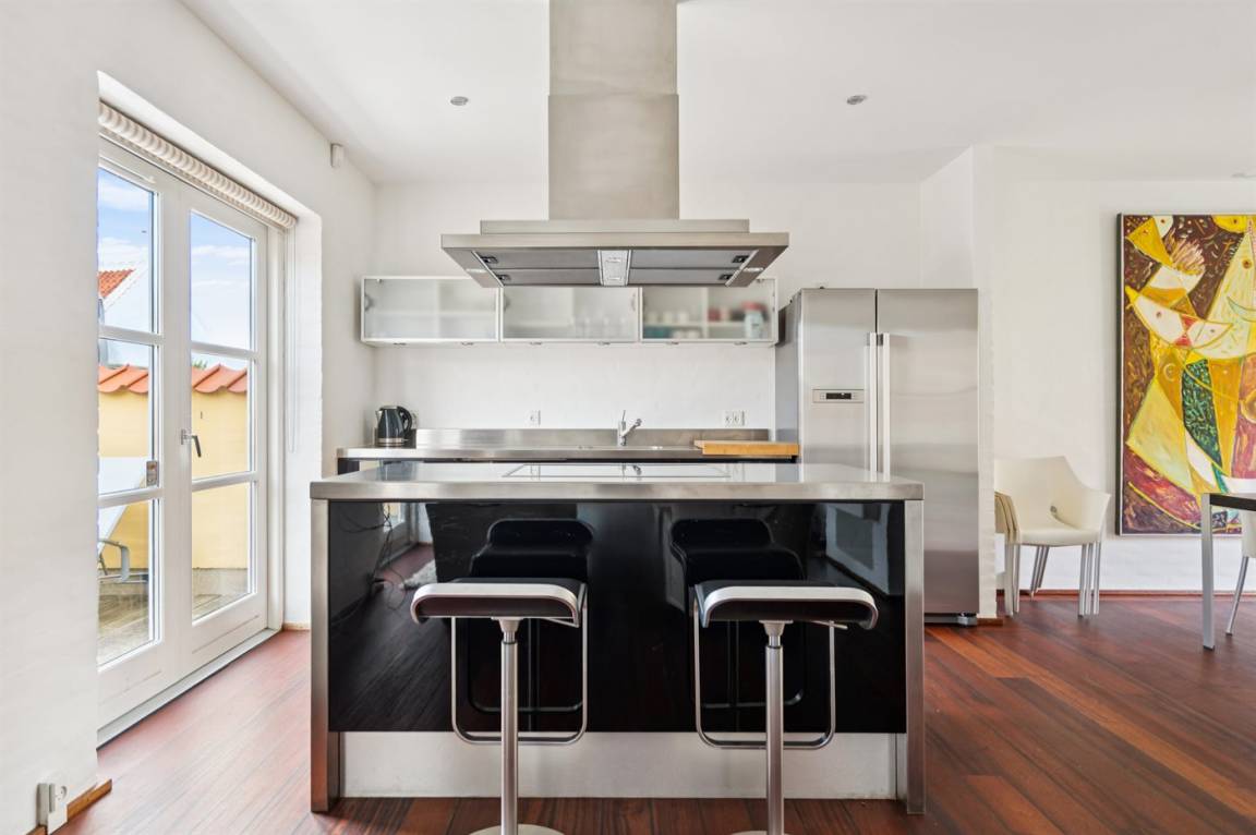 KücheDie Küche ist mit Kühlschrank ausgestattet. Außerdem gibt es 4 Induktions-Kochzonen, Umluftofen sowie Geschirrspüler.