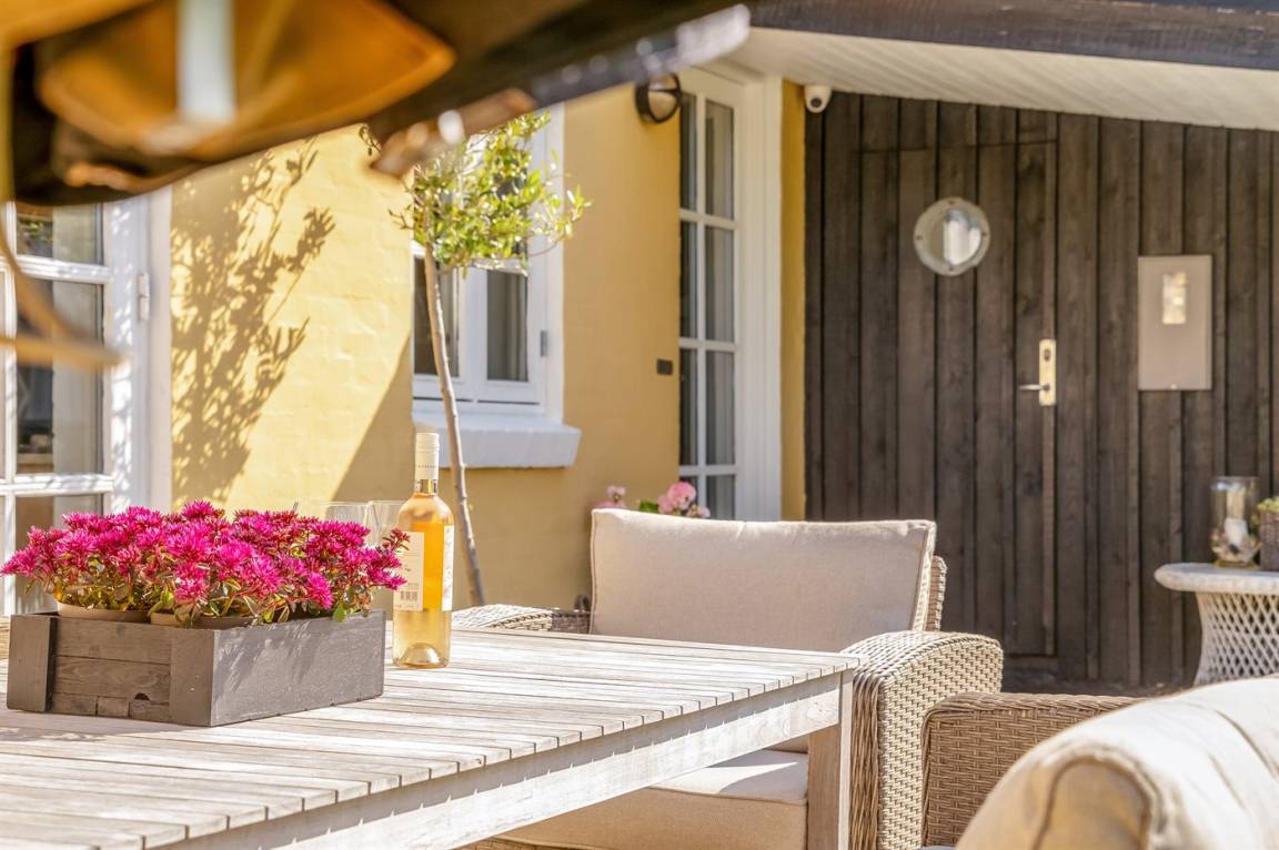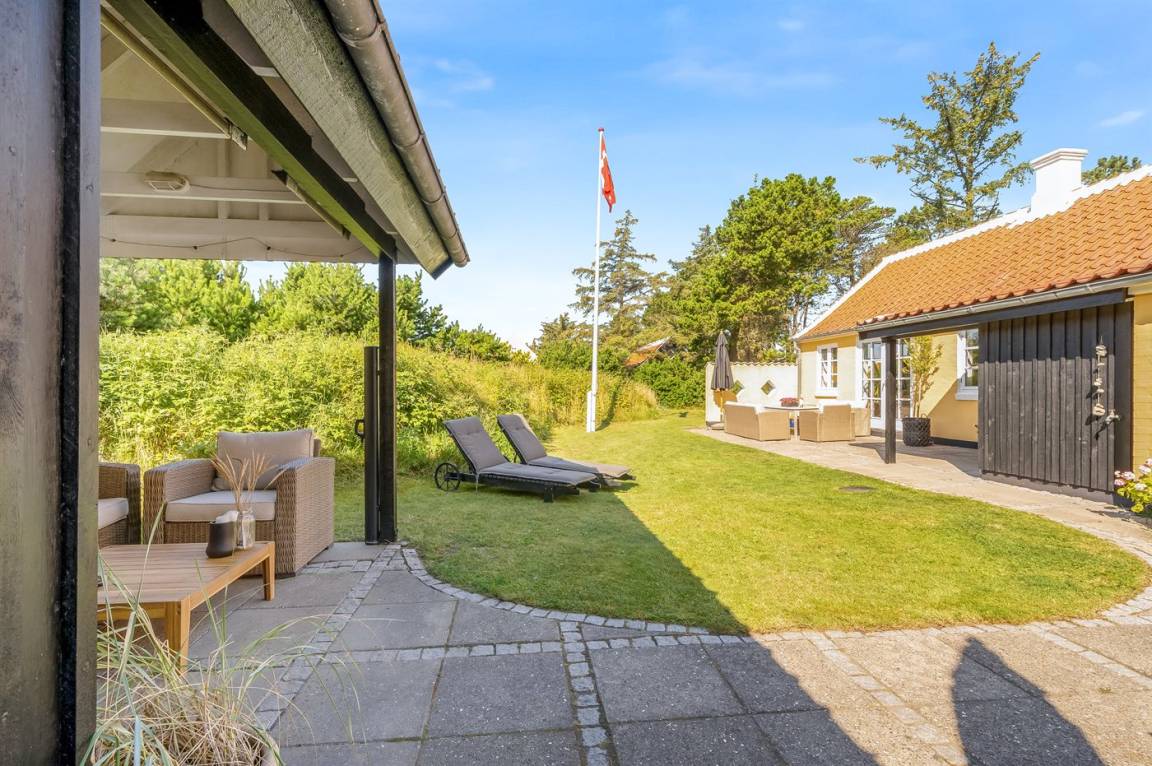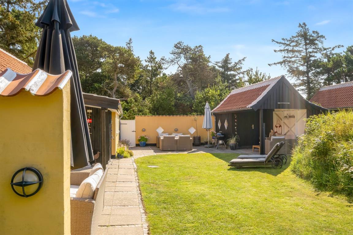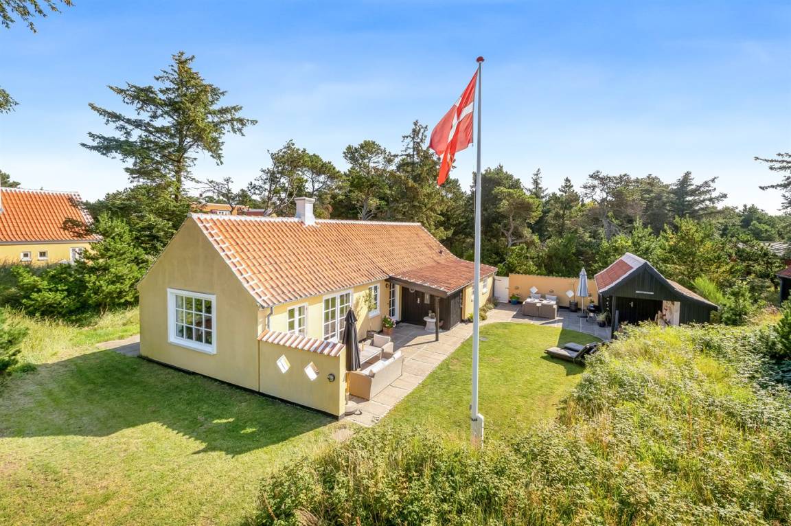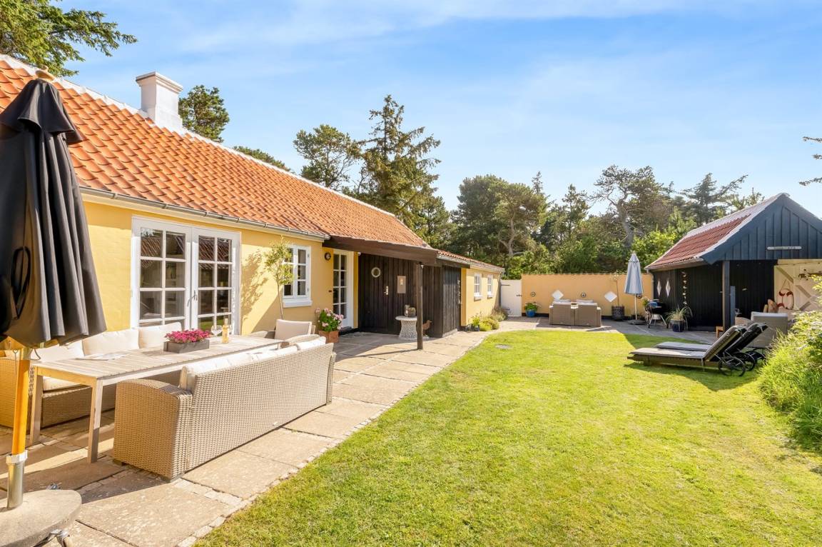Ein klassisches gelbes Skagen-Haus mit einer zentralen Lage im beliebten Viertel Gl. Skagen – in der Nähe vom schönen Badestrand und dem Platz von wo aus man den Sonnenuntergang genießen kann – dieser ist auch als "Solnedgangspladsen" bekannt. Außerdem liegt das Haus nur eine kurze Radtour vom Zentrum Skagens und dem Hafen mit den vielen gemütlichen Restaurants und Cafés entfernt.