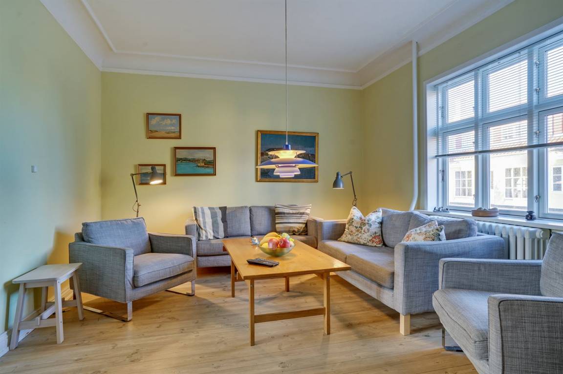 Dieses schöne, hell eingerichtete Skagenshaus liegt zentral im Stadtzentrum – dicht am Hafen, dem Strand und den vielen Sehenswürdigkeiten der Stadt. Das Haus liegt auf einem eingezäunten Grundstück an der Hauptstrasse, die zum Grenen führt – wo sich die Nordsee und das Kattegat treffen. Zum Haus gehört ein gegen Süden gelegener und vor dem Wind geschützter Wintergarten sowie ein kleiner Rasen mit einem Kirschbaum – die Kirschen dürfen gepflückt werden. Ein Unterstellplatz für Fahrräder steht zur Verfügung.