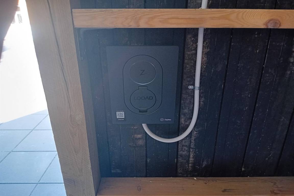 DraußenDie Ferienunterkunft liegt auf einem 415 m² großen Naturgrundstück. Das Grundstück ist eingezäunt. Die Entfernung zum Meer beträgt 1500 m. Die nächste Einkaufsmöglichkeit liegt 200 m entfernt. Es steht ein offenes Terrassenareal zur Verfügung. Es steht ein Grill zur Verfügung. Es ist ein Ladestecker für Elektroautos installiert. Mit einer Ladeleistung von 11 kW. Parkplatz auf dem Grundstück.