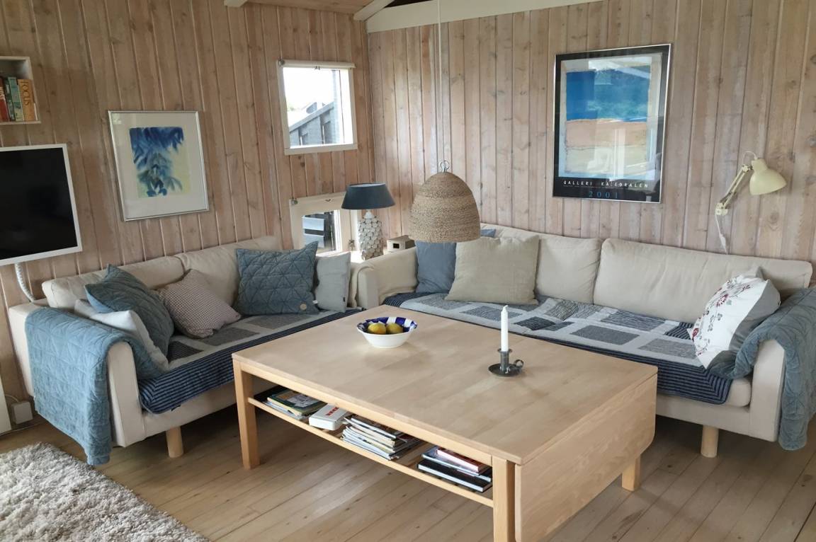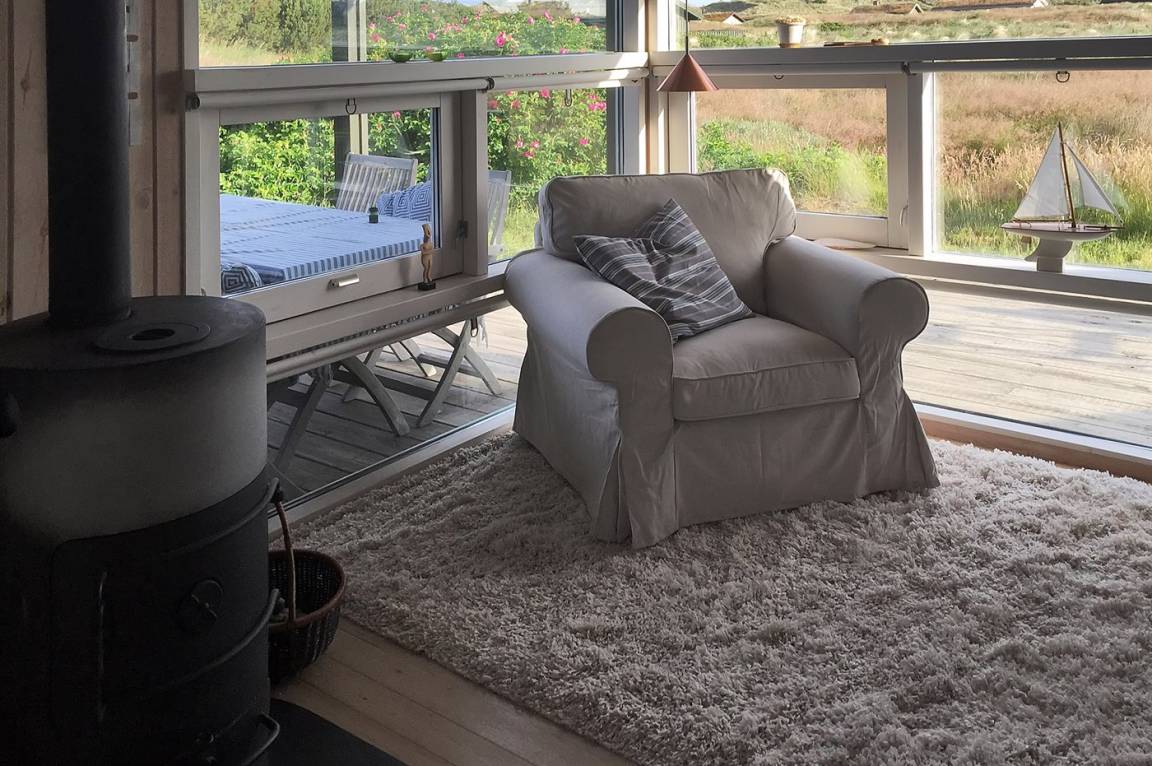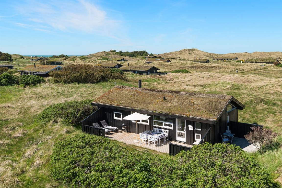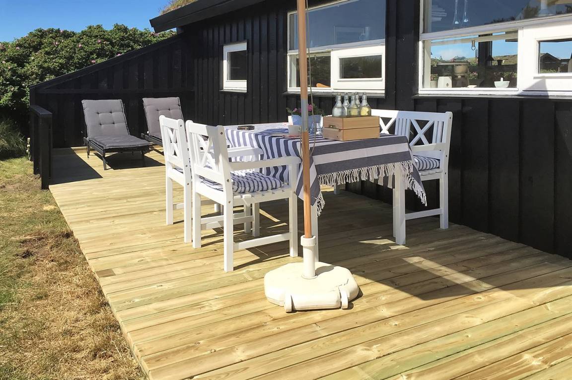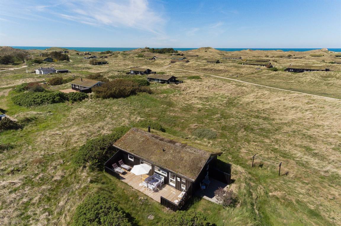 In einem ruhigen, naturschönen Gebiet liegt dieses Ferienhaus zurückgezogen auf einem großen und geschlossenen Grundstück nahe schönem Badestrand. Vom Wohnzimmer gibt es freien Blick auf die Dünen.