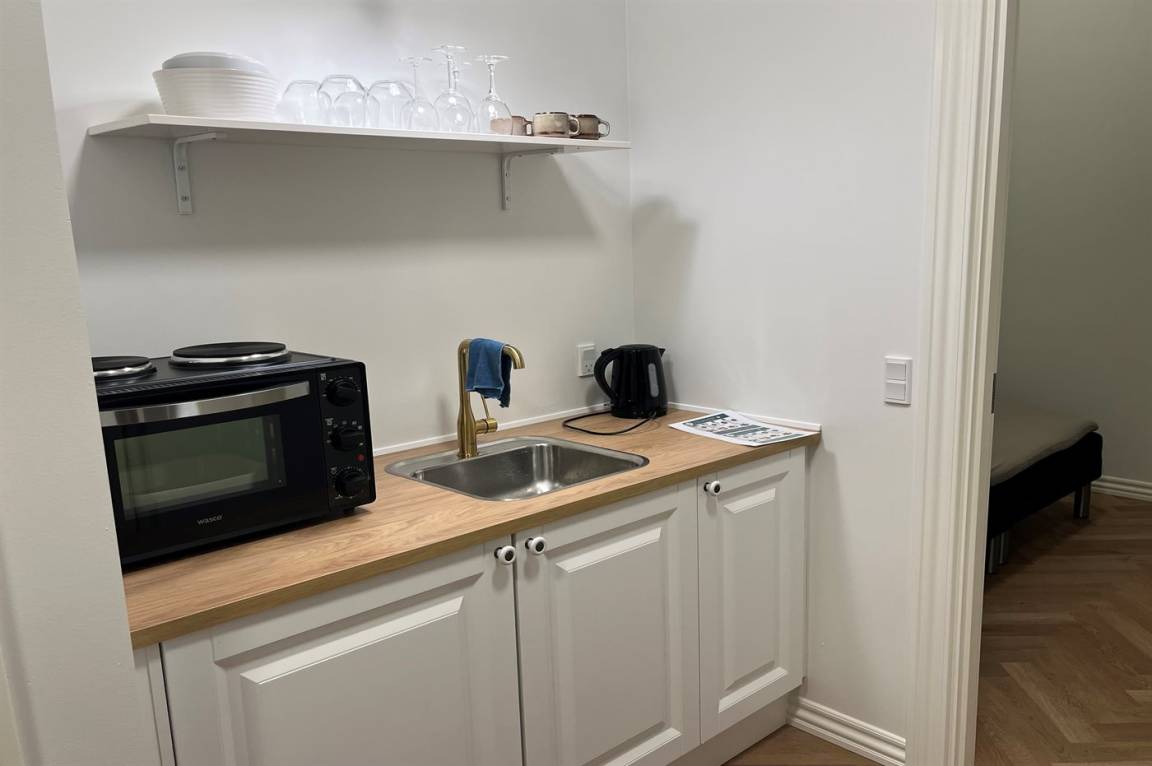 KücheDie Küche ist mit Kühlschrank ausgestattet. Außerdem gibt es 2 elektrische Kochplatten, Minibackofen.