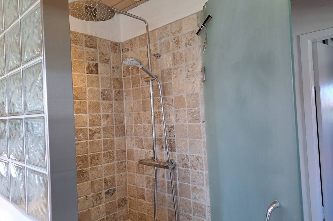 Es gibt 1 Badezimmer mit Fußbodenheizung, Duschnische und Toilette.