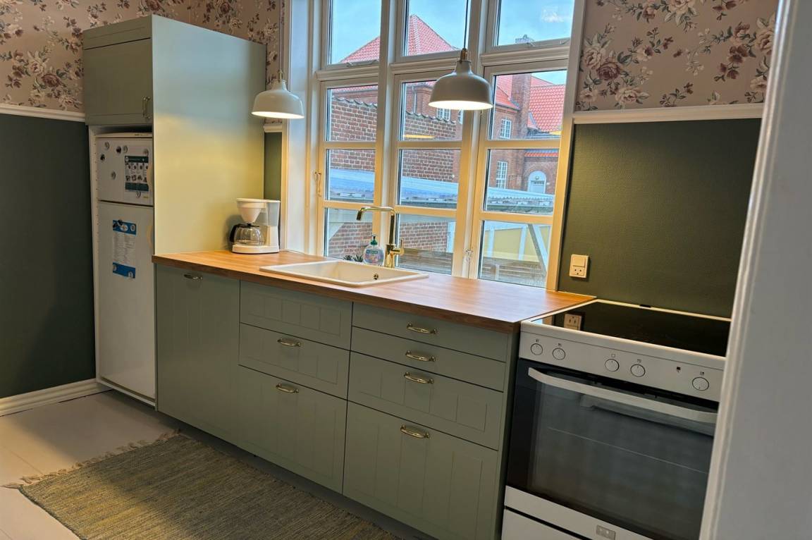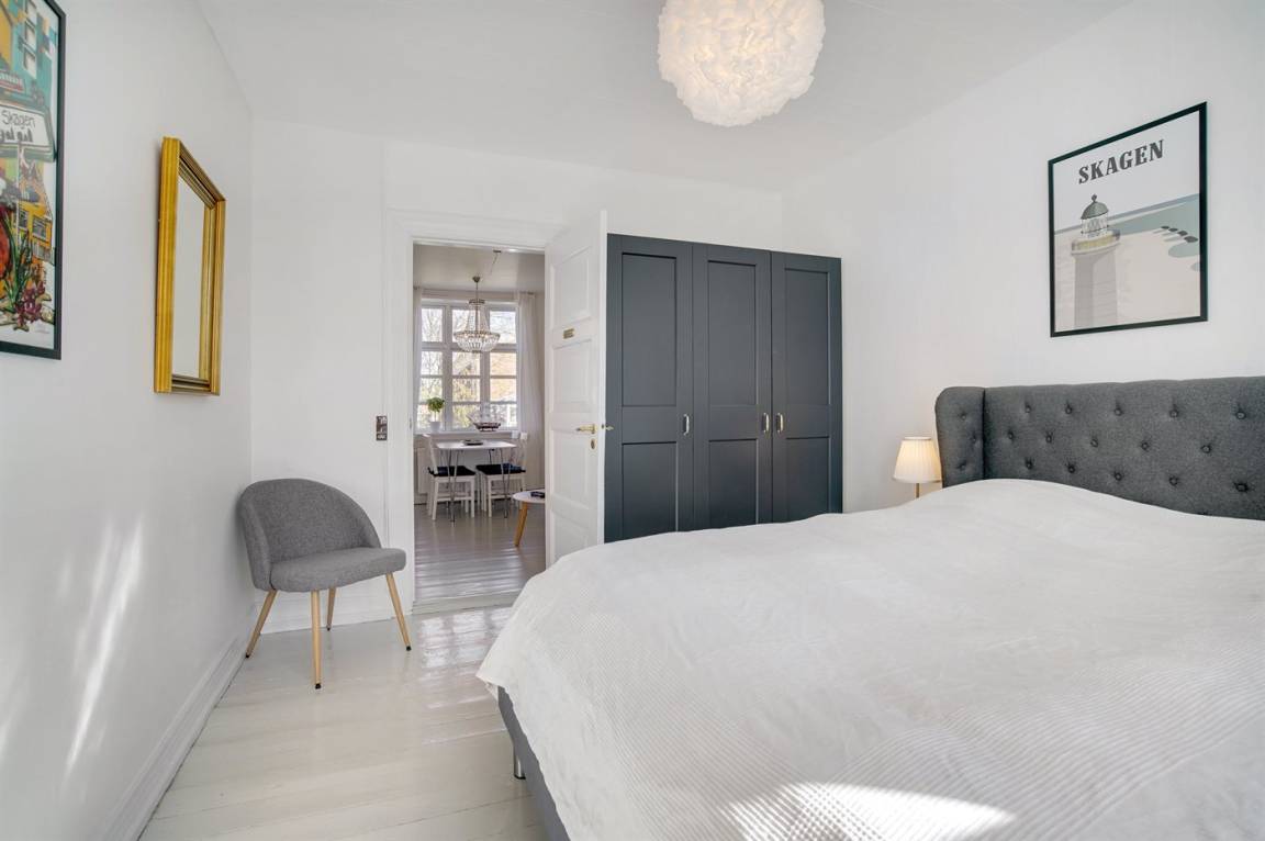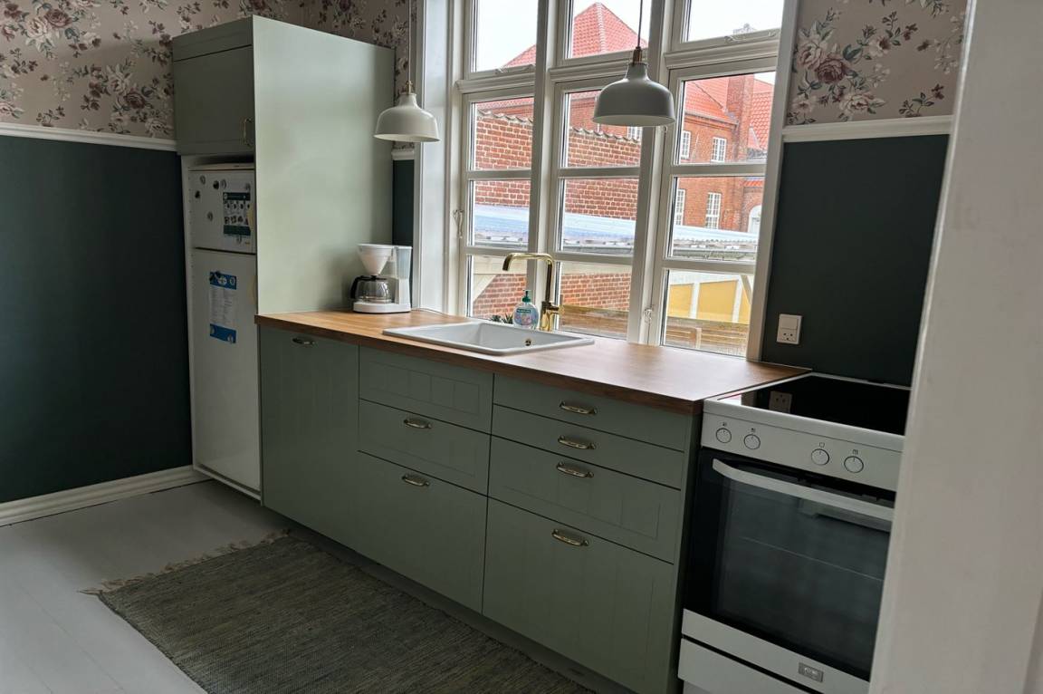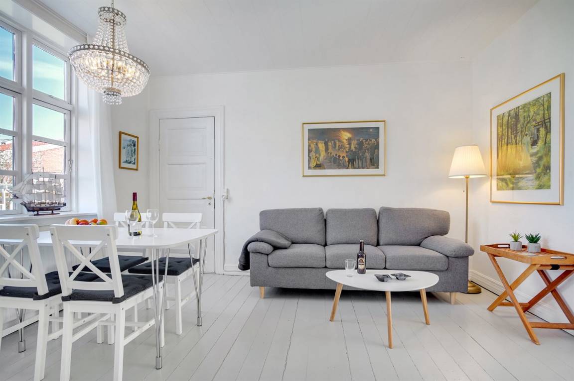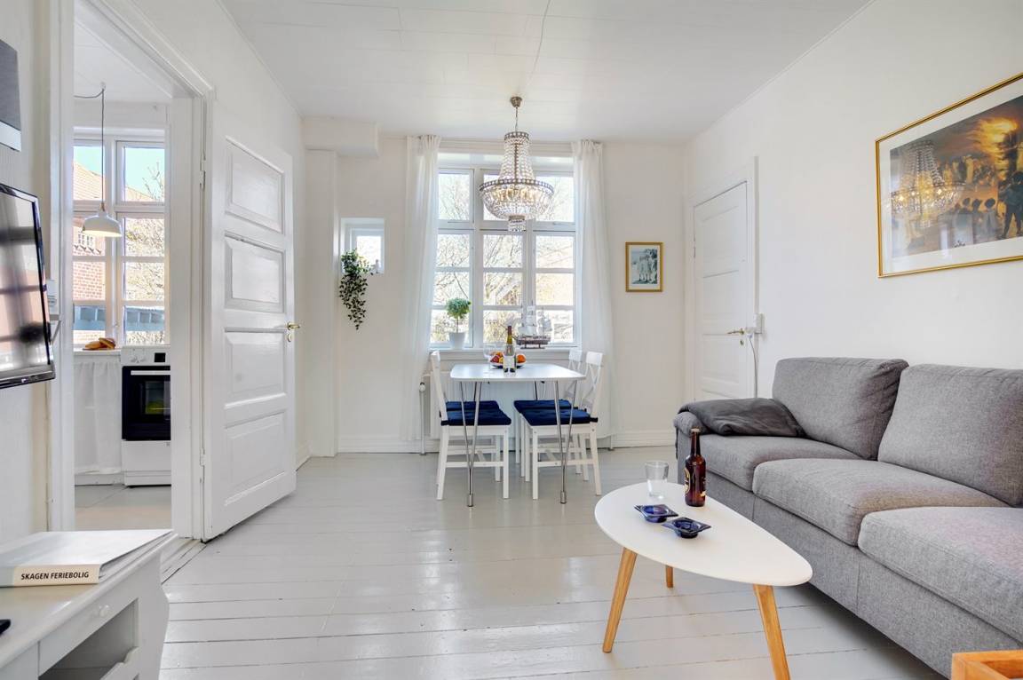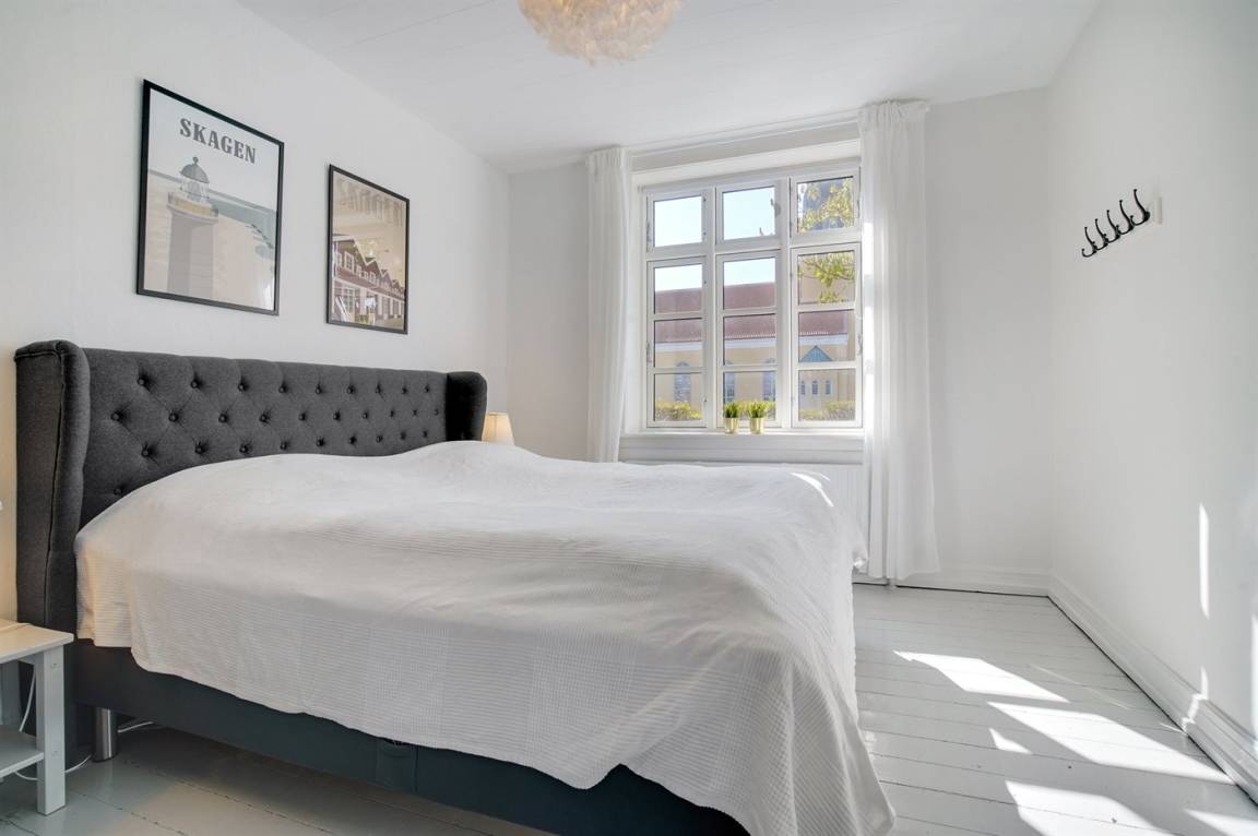 Wohnung in großem Skagenhaus, gegenüber der Kirche von Skagen gelegen. Zur Wohnung gehört ein gemeinsamer Garten mit Gartenmöbeln und Terrasse.