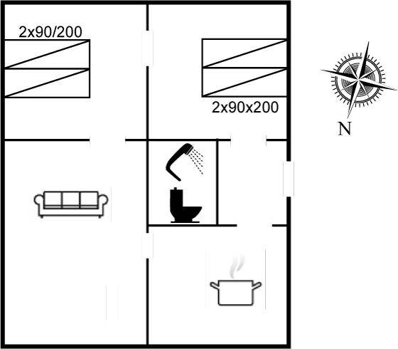 SchlafverhältnisseDie Schlafplätze verteilen sich auf 2 Schlafräume. 4 Schlafplätze in Doppelbetten.