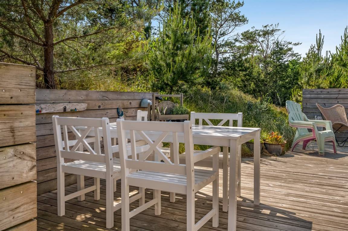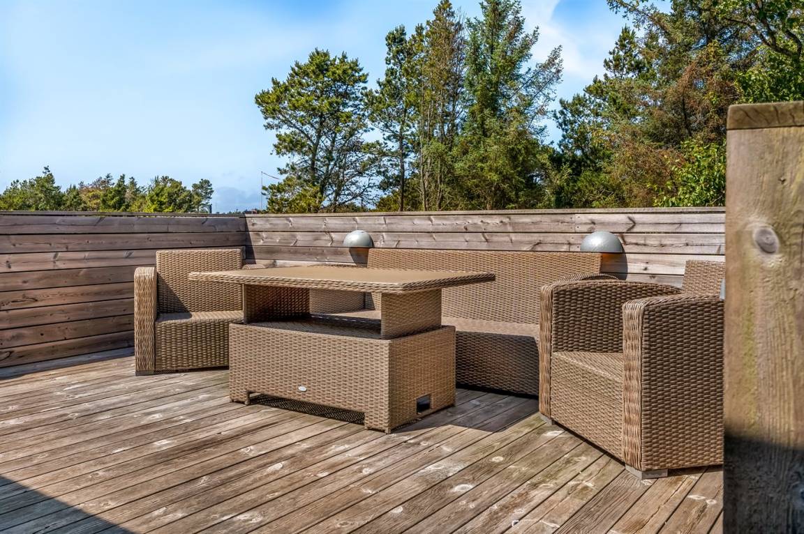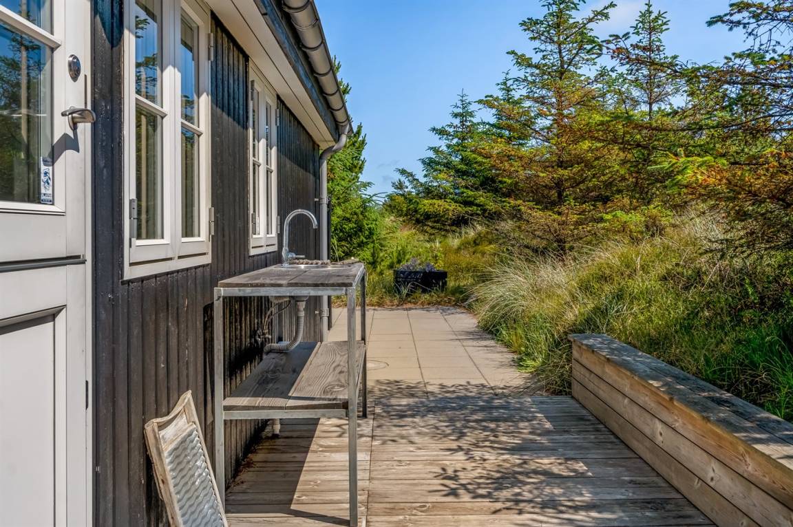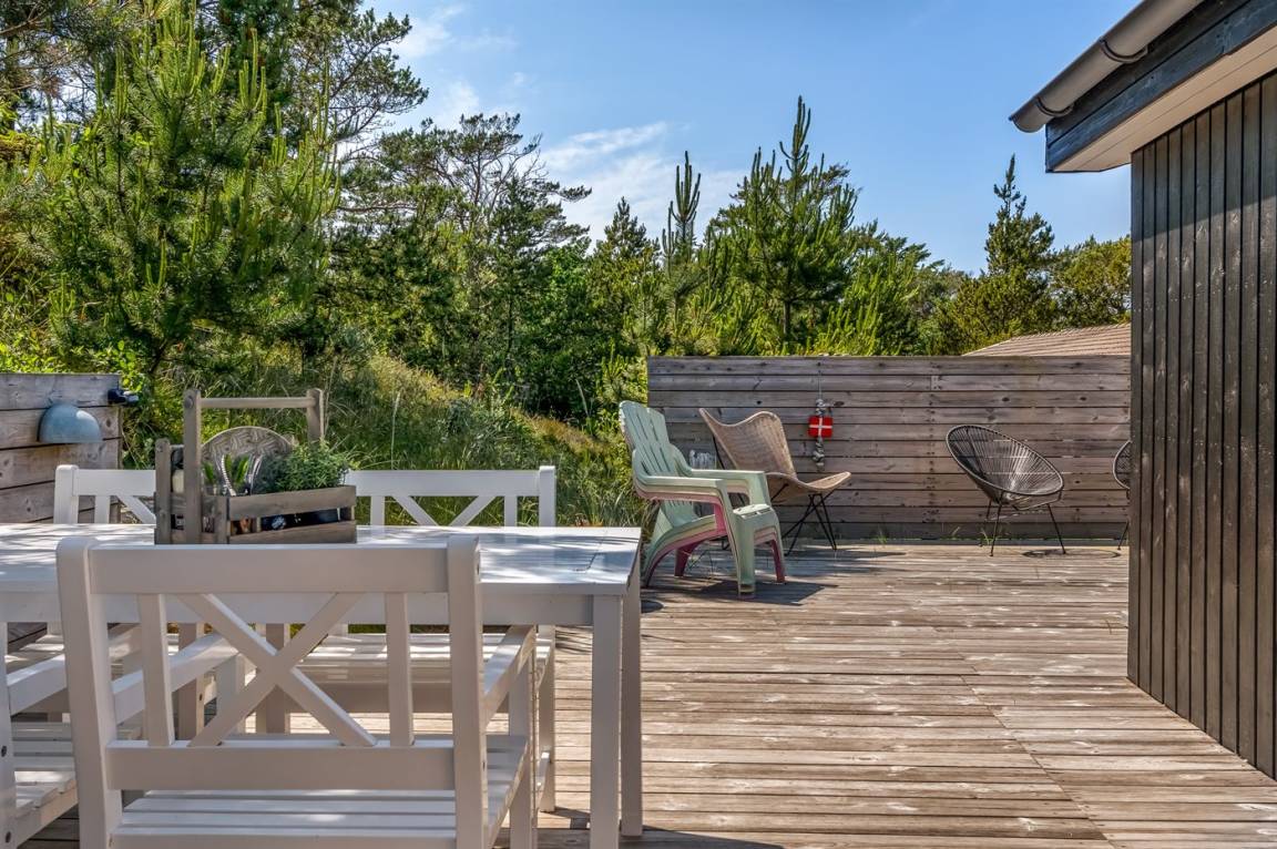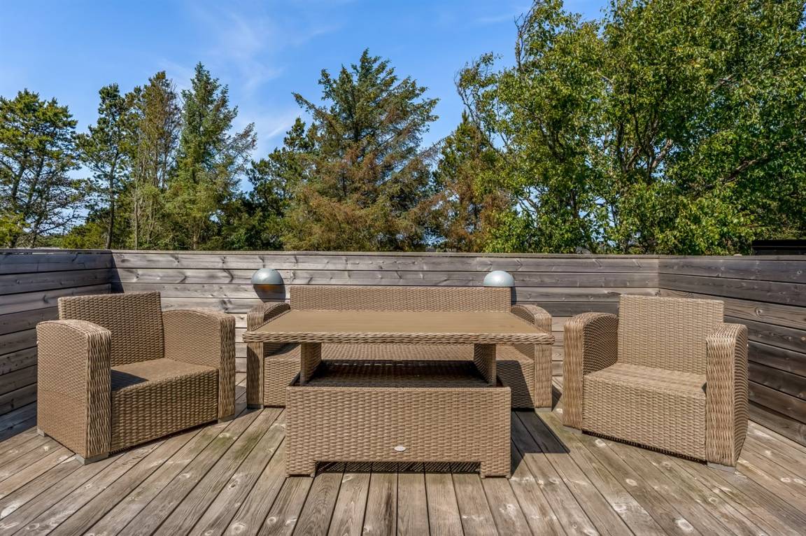 DraußenDie Ferienunterkunft liegt auf einem 3552 m² großen Dünengrundstück. Die Entfernung zum Meer beträgt 800 m. Die nächste Einkaufsmöglichkeit liegt 500 m entfernt. Es steht ein 45 m² Terrassenareal zur Verfügung. Geräteraum. Es ist ein Ladestecker für Elektroautos installiert. Parkplatz auf dem Grundstück.