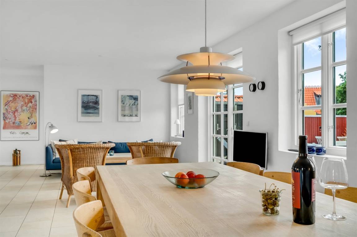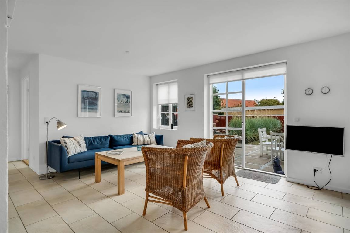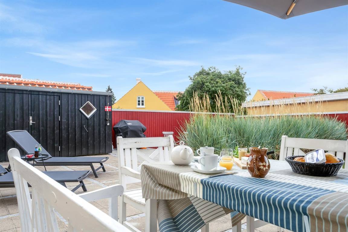 Dieses Skagenhaus, 2006 gebaut, liegt in der Mitte von Skagen - nah am Strand. Zum Haus gehören kleiner Garten und Terrasse mit Gartenmöbeln. Helle gestrichene Wände und Decken. Beheizte Klinkerböden überall, jedoch Holzfußböden im Obergeschoss. Das Haus ist geschmackvoll eingerichtet, und das Erdgeschoss verfügt über eine große Küche mit Ceran-Feld, Warmluftofen, Mikrowelle, Tielkühlgerät und Geschirrspüler. Die Küche ist mit dem Wohnzimmer kombiniert und enthält Stereoanlage mit CD-Spieler, DVD-Spieler, TV und Gemeinschaftsantenne. Außerdem Badezimmer, Schlafzimmer und Waschküche mit Waschmaschine und Wäschetrockner. Das Obergeschoss verfügt über 3 Schlafzimmer, das eine mit TV, und Badezimmer. Ferner kostenlose, kabellose Internetverbindung (Computer ist mitzubringen) und Kinderbett vorhanden.