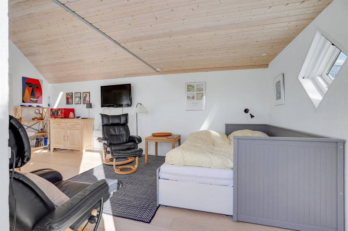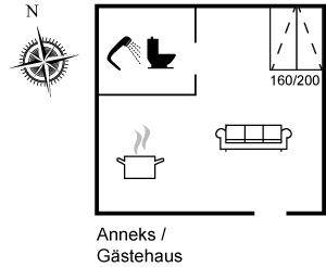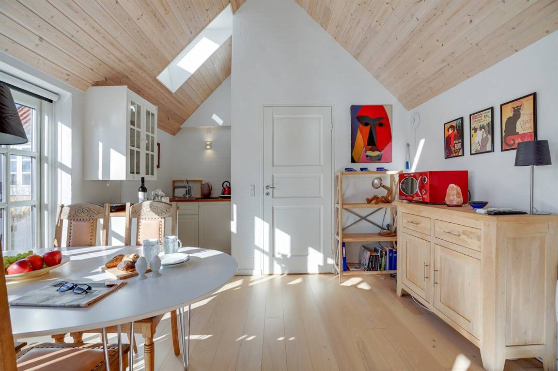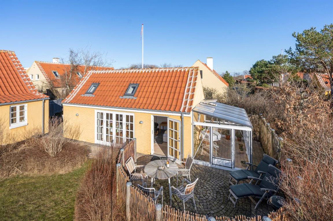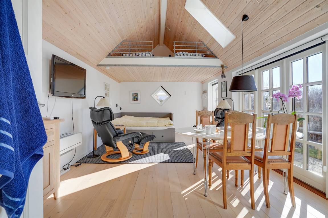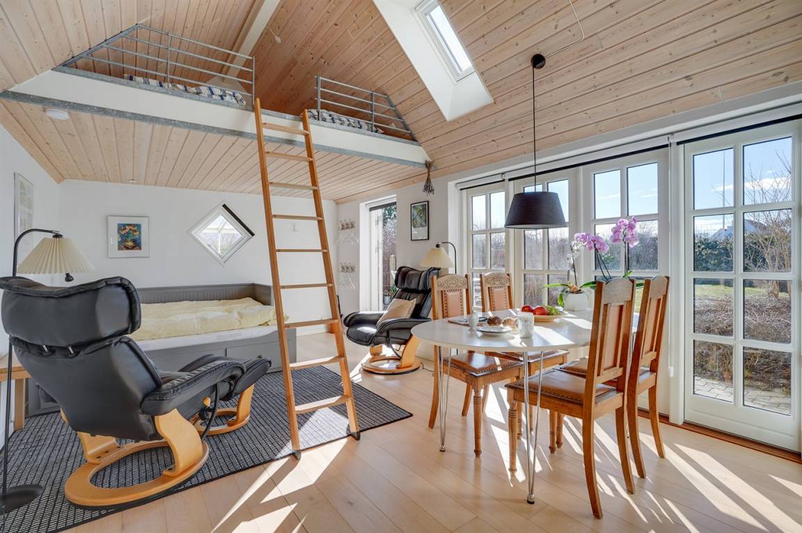 Gemütliches kleines Nebengebäude in der Nähe vom Sandstrand Sønderstrand samt Wahrzeichen Vippefyret mit Zugang zur eigenen Terrasse und zum Wintergarten. Die Schlafplätze befinden sich auf dem Doppelschlafcouch im Wohnzimmer und zwei Matratzen im offenen Obergeschoss. Die Wohnung eignet sich daher besonders für ein Paar, das Skagen erleben möchte.