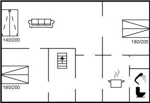 SchlafverhältnisseDie Schlafplätze verteilen sich auf 2 Schlafräume. 4 Schlafplätze in Doppelbetten. 2 Schlafplätze auf einer Doppelschlafcouch. 2 von diesen Schlafplätzen befinden sich im Wohnzimmer.