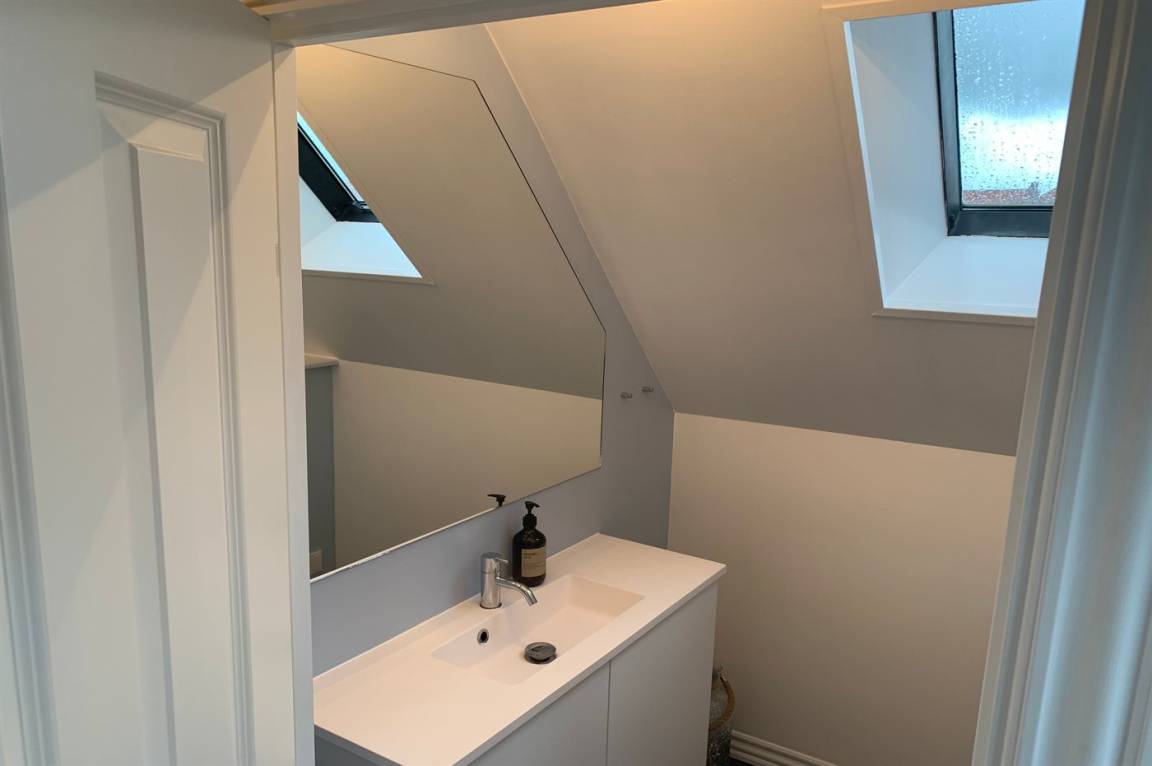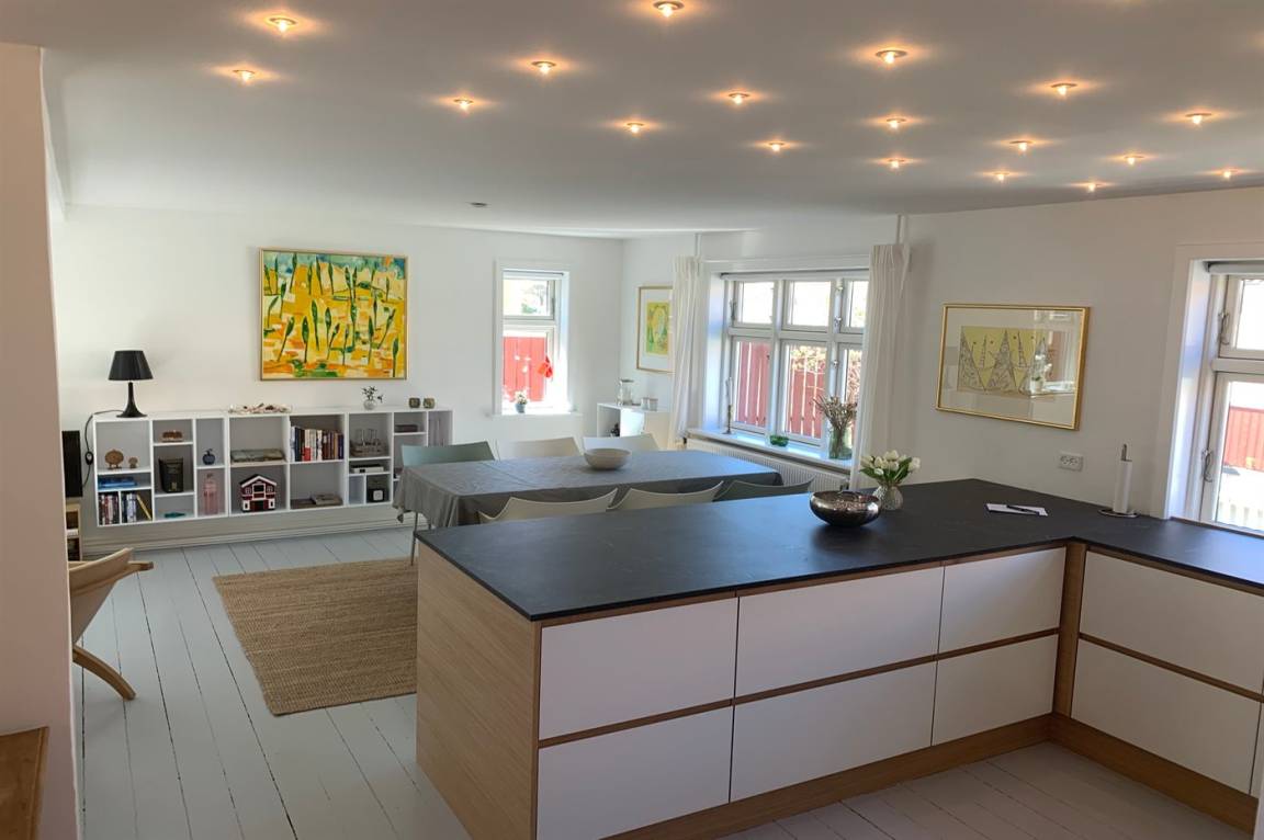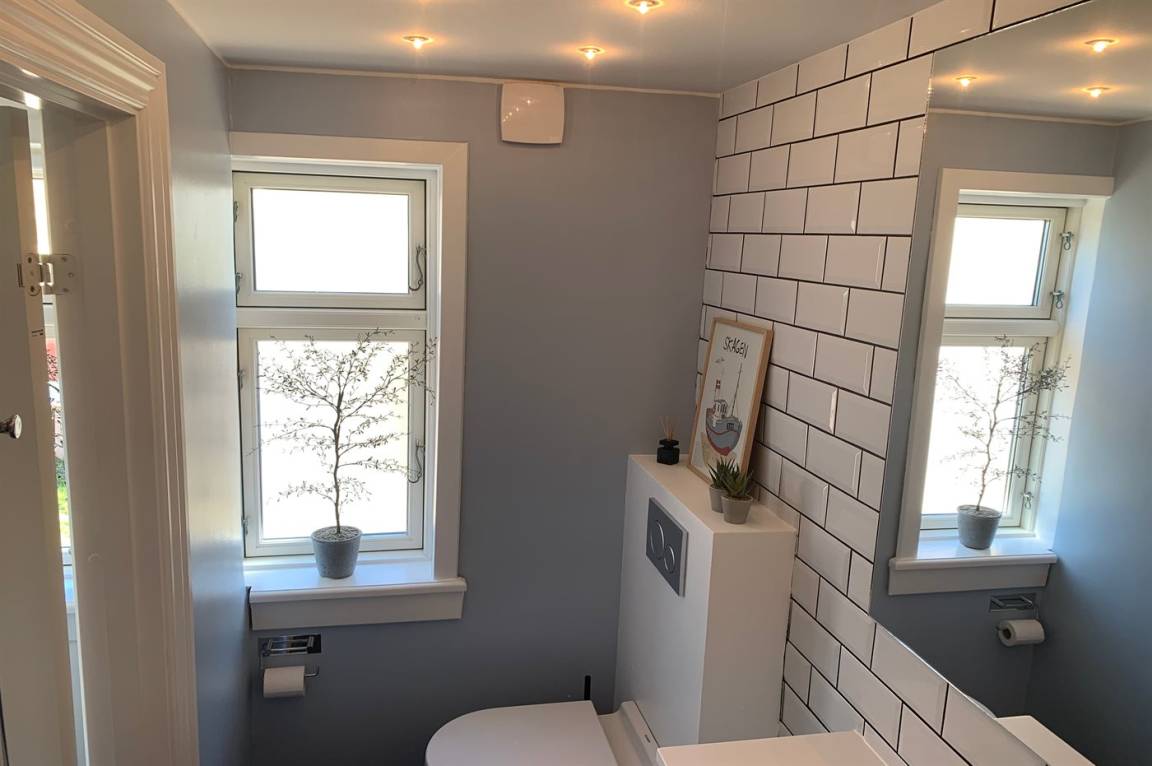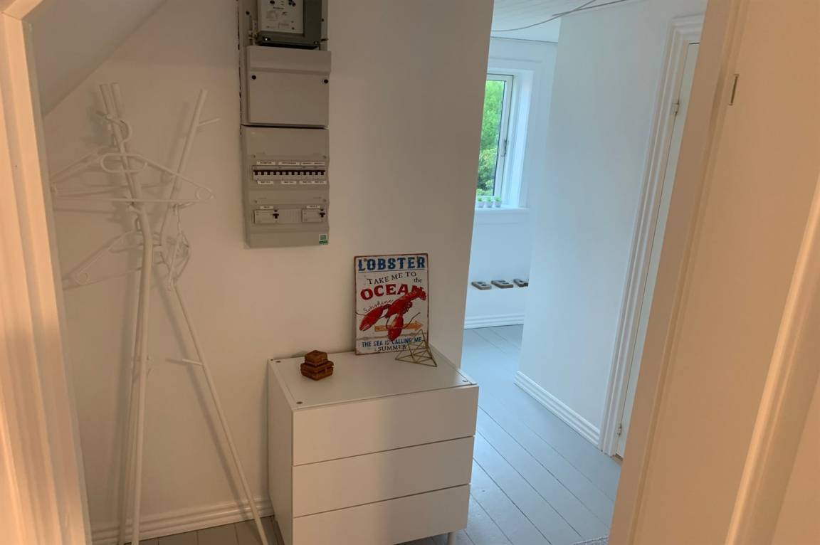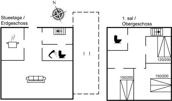 Im Erdgeschoss befindet sich ein Badezimmer mit Duschen und Toilette, im 1. Stock befindet sich eine Toilette. Im Wohnzimmer steht ein Fernseher mit Dongle, Disney+, ViaPlay und Netflix-Zugang zur Verfügung, auf dem Sie dänische, schwedische, norwegische und 5 deutsche Sender empfangen können. Außerdem steht DVD-/BlueRay-Player zur Verfügung.