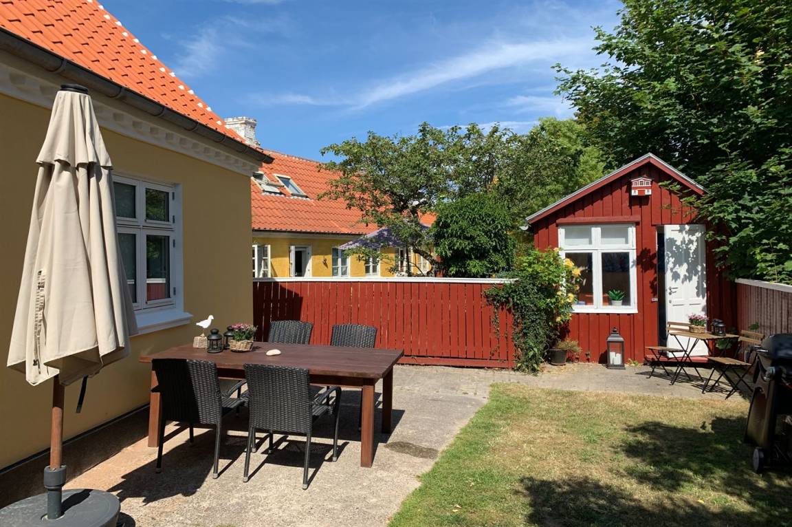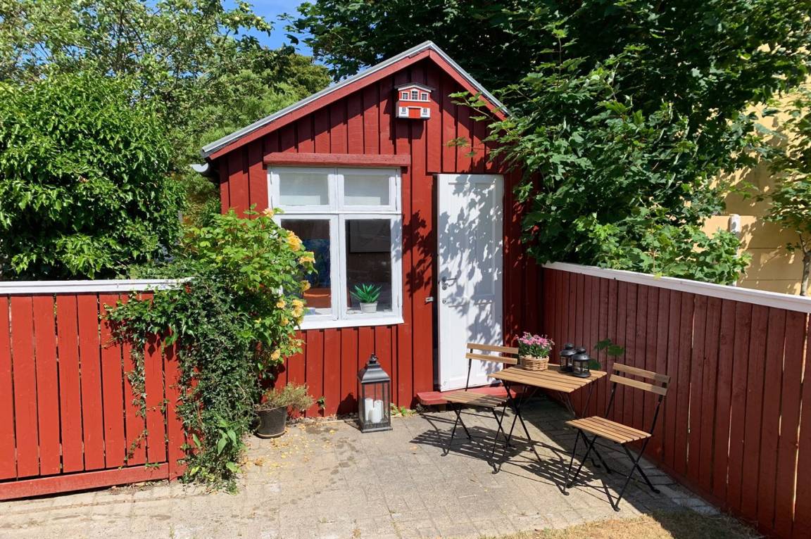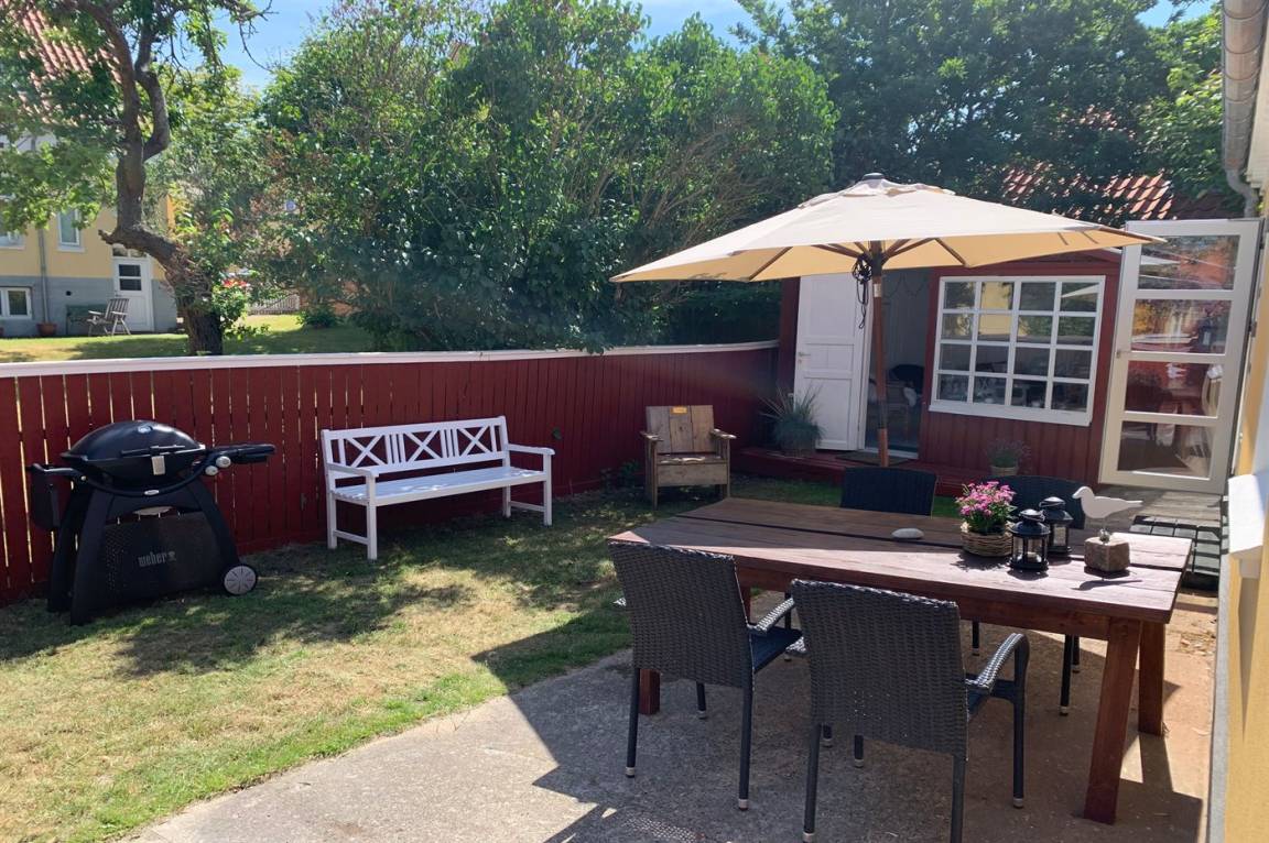 Die Ferienunterkunft liegt auf einem 380 m² großen, eingezäunten Gartengrundstück. Zur Ferienunterkunft gehört ein 40 m² großer, schöner Atriumgarten, wo Sie fast den ganzen Tag hindurch die Sonne genießen können. Zum Haus gehören 2 Gästehäuser, von dem das eine mit 2 zusätzlichen Schlafplätzen eingerichtet ist und das andere mit einem gemütlichen Wohnbereich eingerichtet ist.