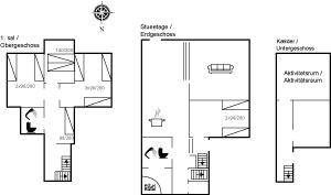 SchlafverhältnisseDie Schlafplätze verteilen sich auf 4 Schlafräume. 2 Schlafplätze in einem Doppelbett. 8 Schlafplätze in Einzelbetten. Übrigens: Das eine Einzelbett befindet sich in einem Vorraum im Obergeschoss. Ferner steht ein Kinderbett zur Verfügung.