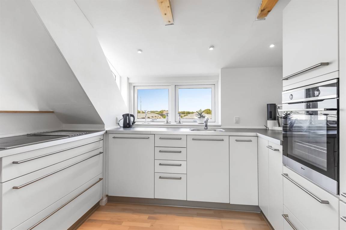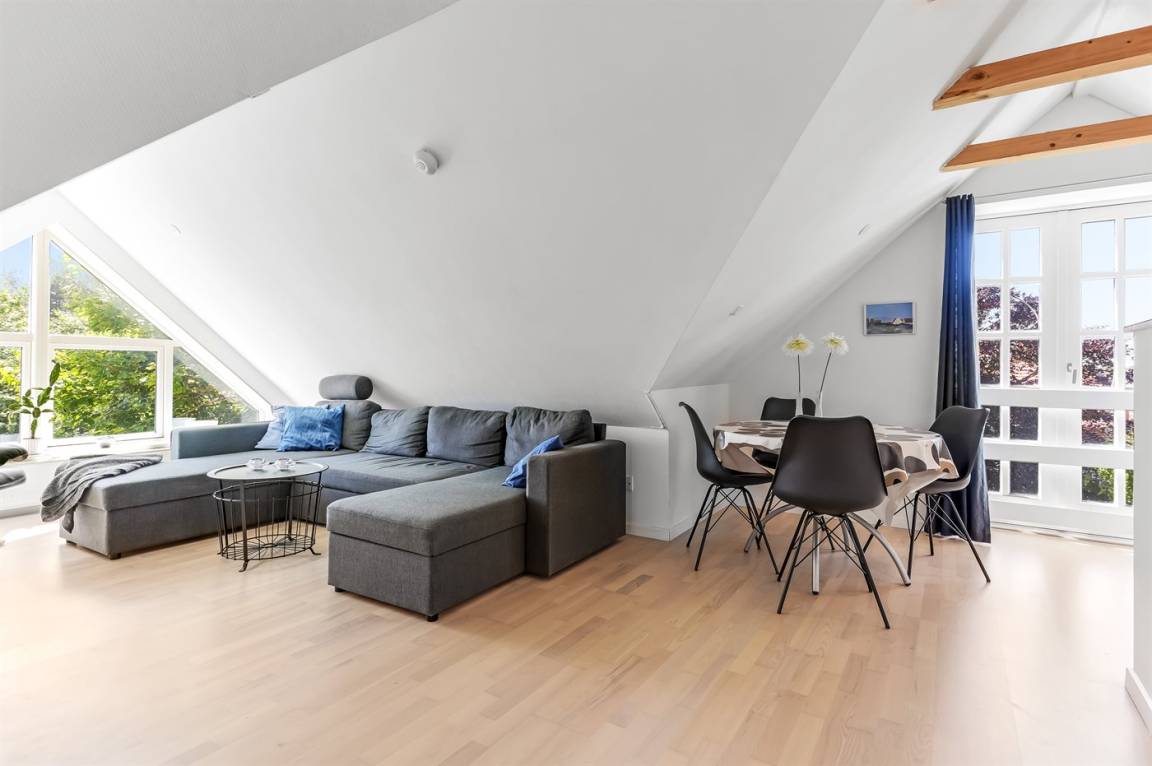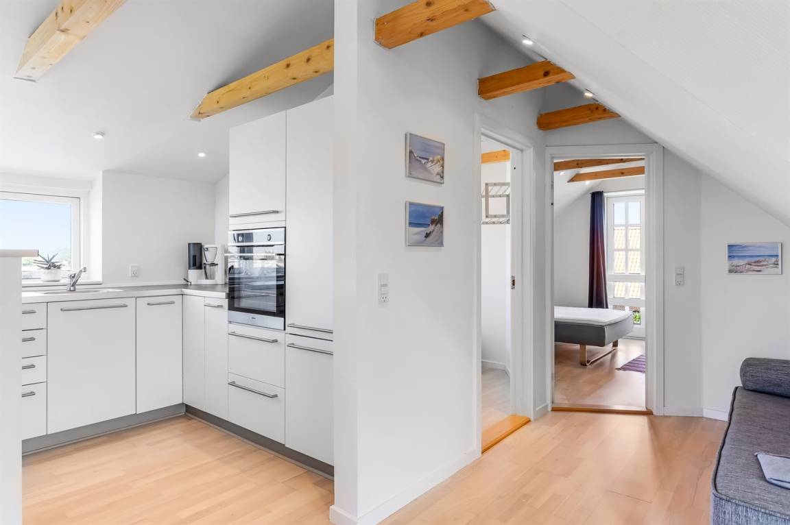 Diese schöne und hell eingerichtete Ferienwohnung liegt im Obergeschoss – dicht am Zentrum von Skagen, dem Hafen und dem Strand. Die Wohnung im Obergeschoss wird ebenfalls vermietet. Bei der Anmietung von beiden Wohnungen erhalten Sie 10 Schlafplätze. Garten und Terrasse sind mit der anderen Wohnung gemeinsam. Übrigens: Das Badezimmer befindet sich im Erdgeschoss neben der Haustür.