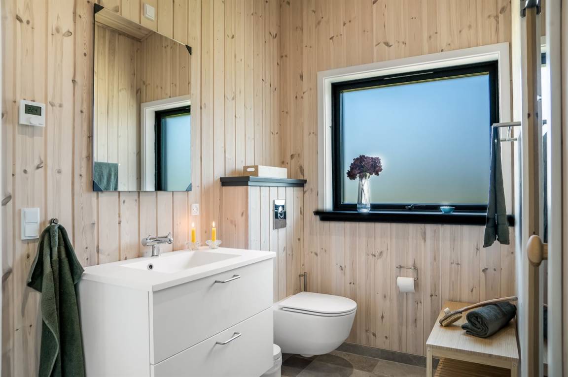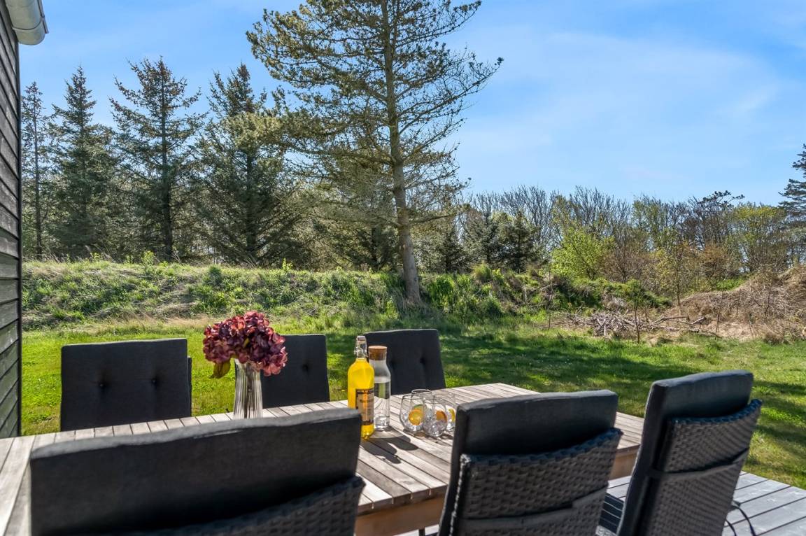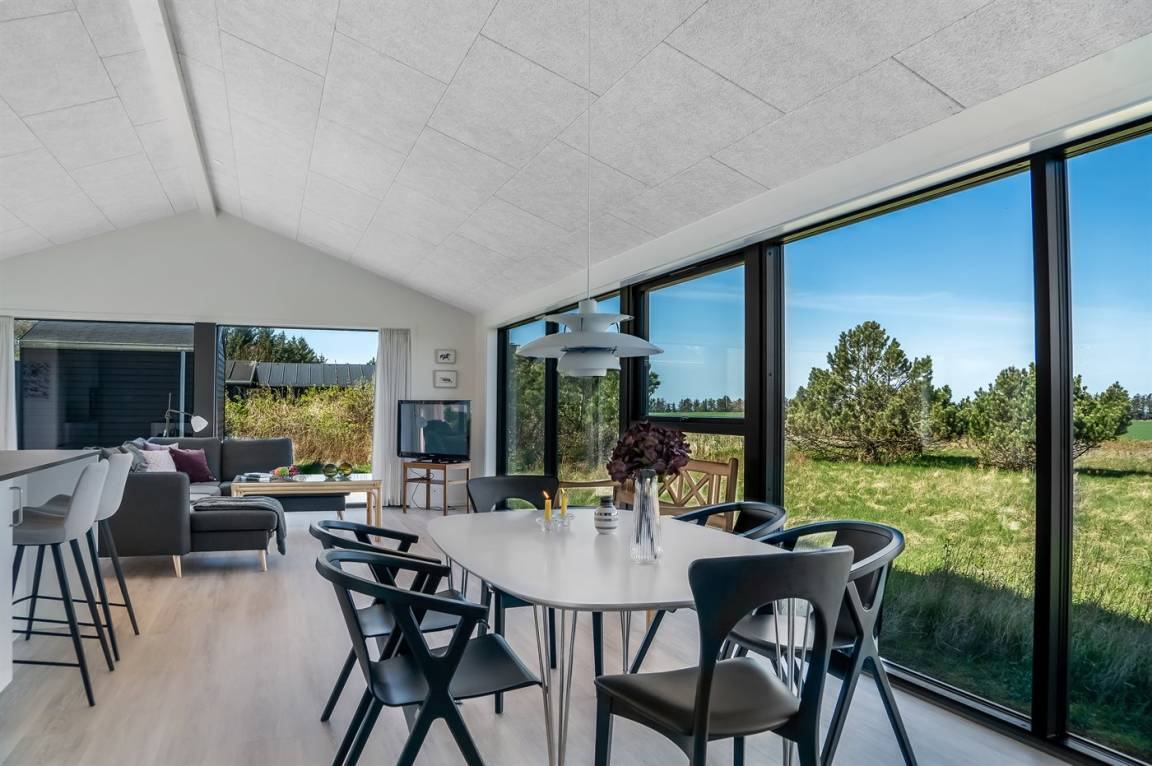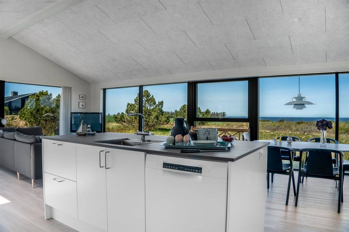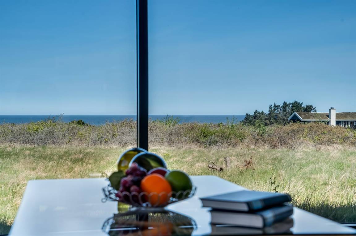 Das Haus liegt hoch in einer malerischen Landschaft und bietet daher einen einzigartigen Panoramablick auf das Meer – sowohl vom Grundstück als auch vom Haus selbst. Die Grundstücke in der Umgebung sind groß, und da das Haus als eines der letzten Häuser in einer Sackgasse liegt, hast du die besten Voraussetzungen für einen ungestörten Aufenthalt, sowohl drinnen als auch draußen. Vor dem Haus erstreckt sich in Richtung Meer eine große, offene Naturlandschaft, die dir die Möglichkeit bietet, eine reiche Tierwelt zu erleben – darunter Rehe, Fasane, Raubvögel und mit etwas Glück sogar den Fuchs.
