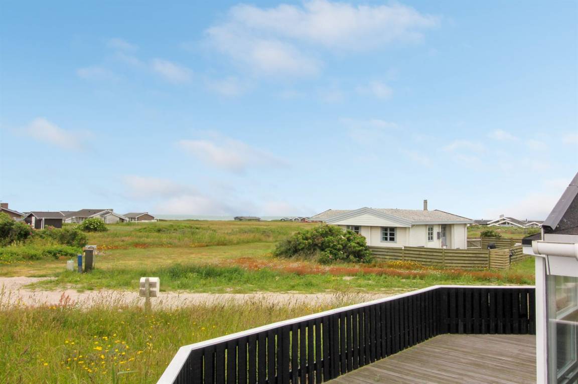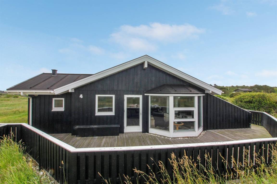 Schönes Ferienhaus auf einem Dünengrundstück, nur 400 m vom Strand entfernt gelegen. Sowohl vom Haus als auch vom Grundstück ist das Meer zu ahnen.