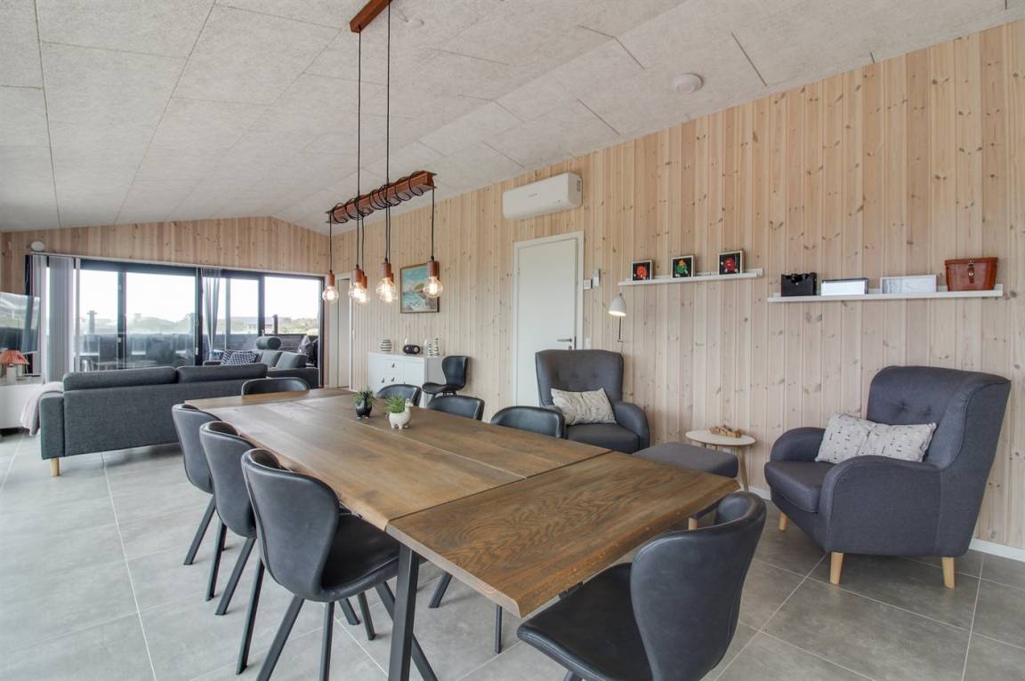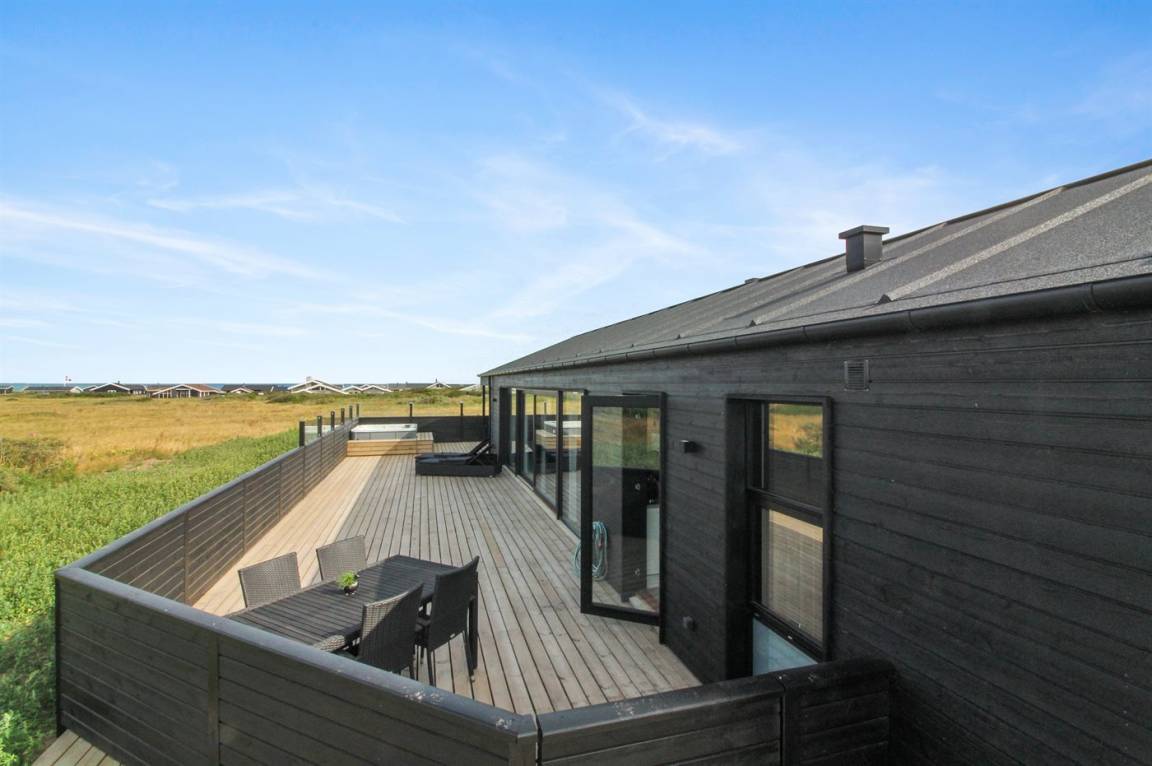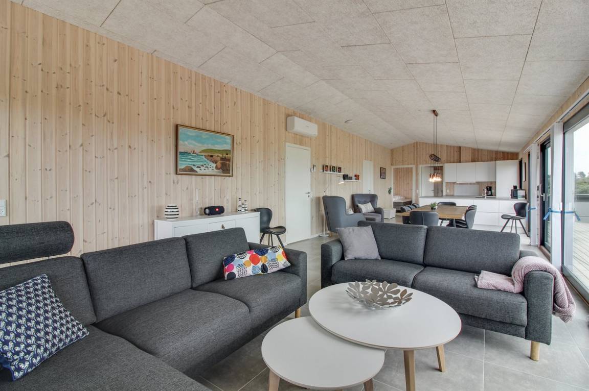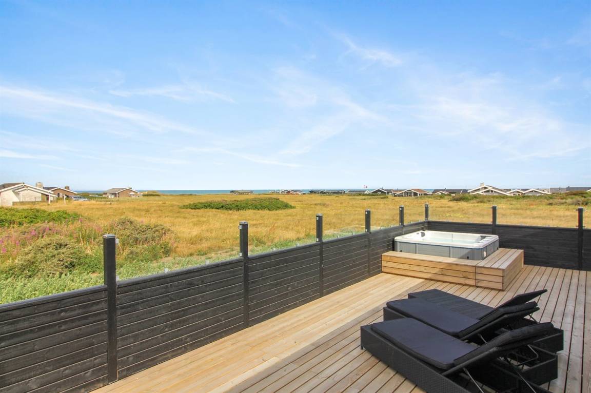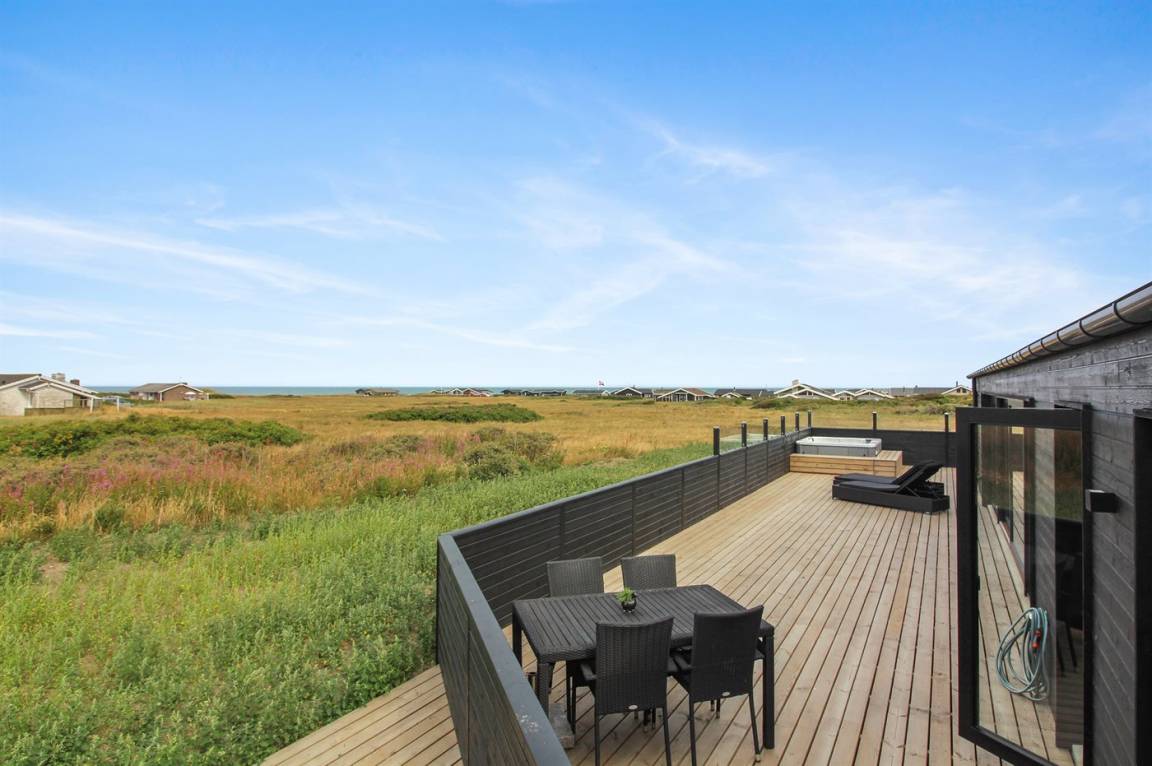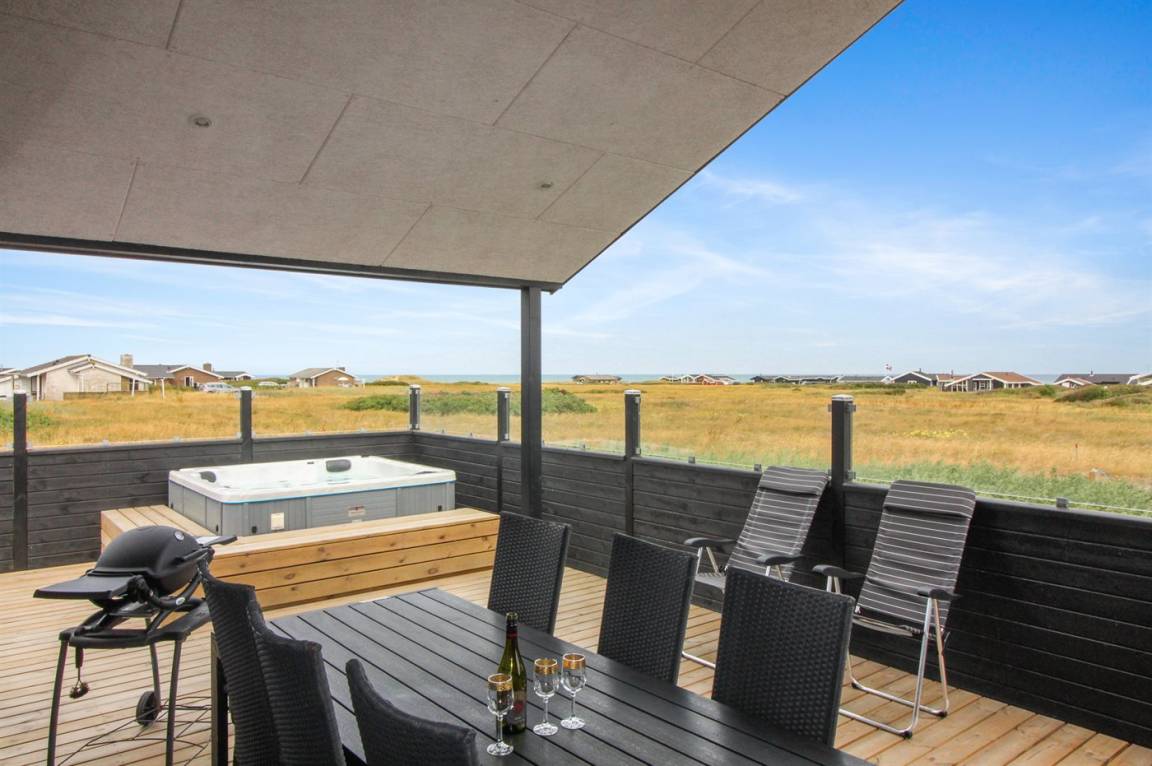 Dieses neue Ferienhaus (2022) mit Meerblick sowohl vom Haus als auch vom Grundstück liegt in Laufweite vom Meer und dem schönen Badestrand entfernt. Das Grundstück grenzt an ein unbebautes Naturgebiet an und liegt nicht weit von einer großen Ferienanlage, mit Aktivitäten für die ganze Familie, wie z.B. tropisches Badeland, römisches Bad, Sporthalle, Kaufmann und Bowling, entfernt.