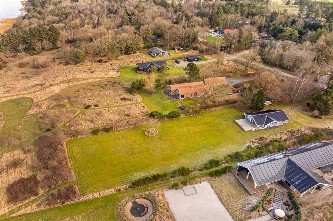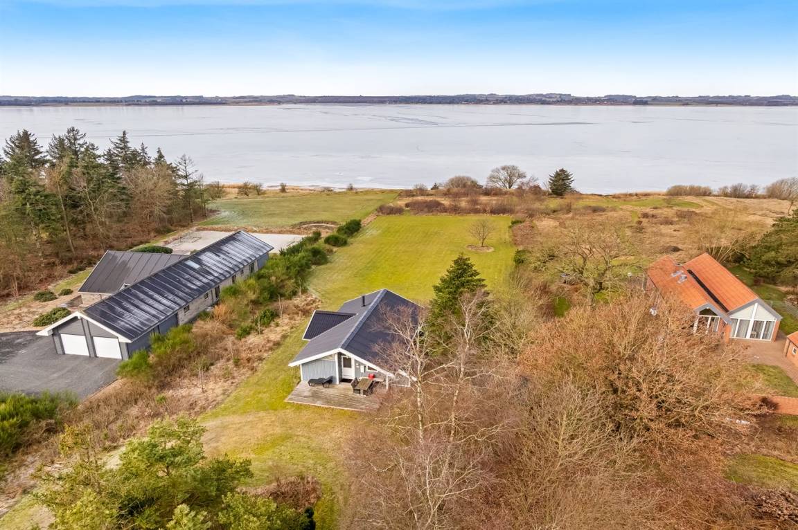 DraußenDie Ferienunterkunft liegt auf einem 2500 m² großen Naturgrundstück. Die Entfernung zum Fjord beträgt 250 m. Die nächste Einkaufsmöglichkeit liegt 5000 m entfernt. In einem Abstand von 1500 m gibt es einen Golfplatz. Es steht ein 20 m² Terrassenareal zur Verfügung. Außerdem gibt es 20 m² überdachte Terrasse. Parkplatz auf dem Grundstück.