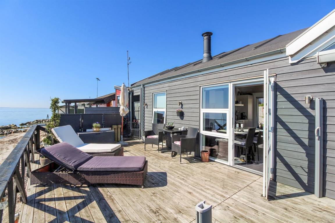 Super schönes Ferienhaus direkt am Wasser mit einer schönen Terrasse mit Blick auf das Wasser.
