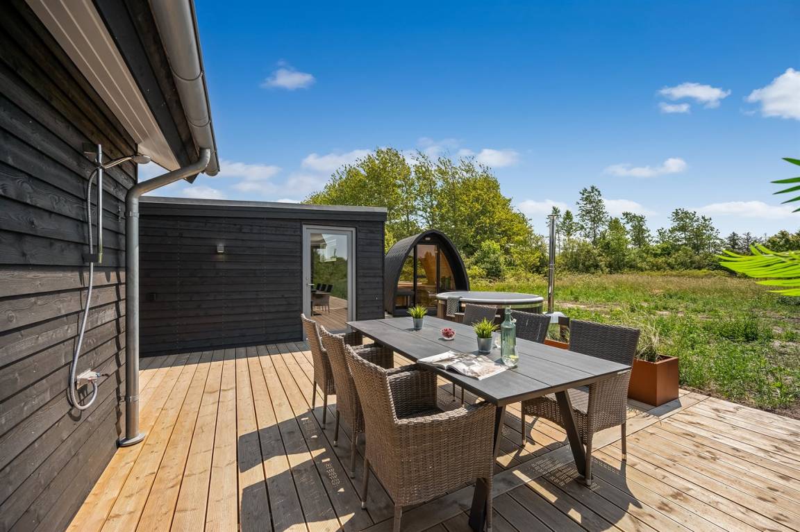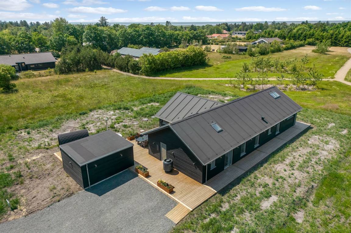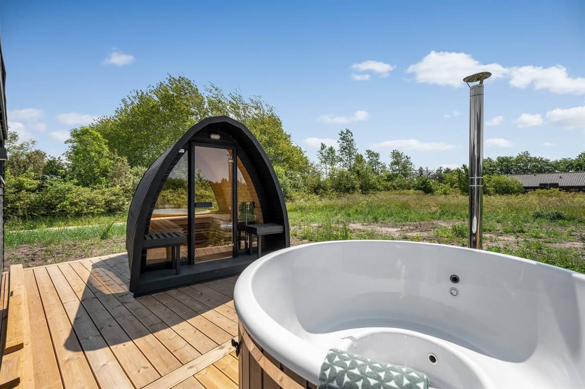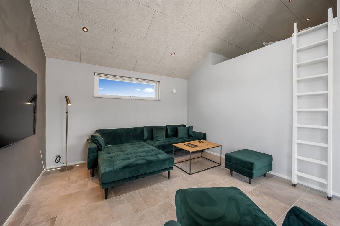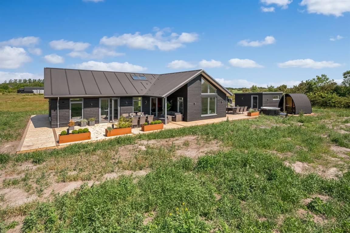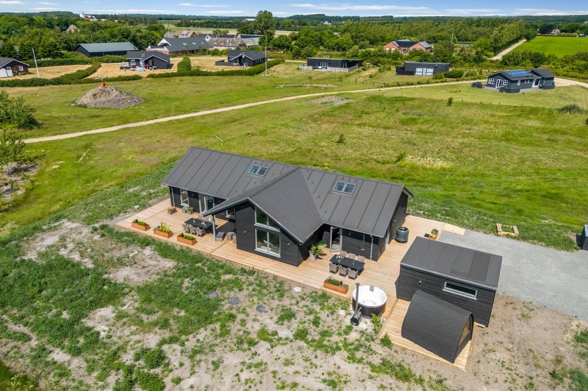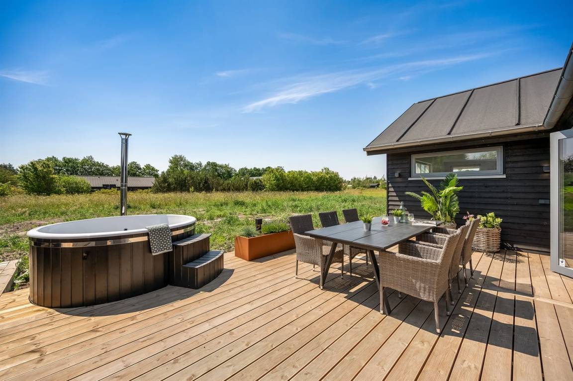 Ein schönes Ferienhaus mit einem Aktivitätsraum und einem fantastischen Außengelände mit großem Hot Tub und Außensauna. Das Haus liegt in der Nähe vom Fjord und dem Hafen von Stauning. Das Haus ist mit einem offenen Obergeschoss eingerichtet – hier findet man 2 der insgesamt 8 Schlafplätze.