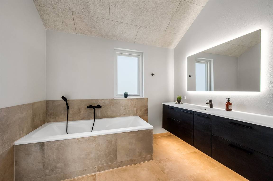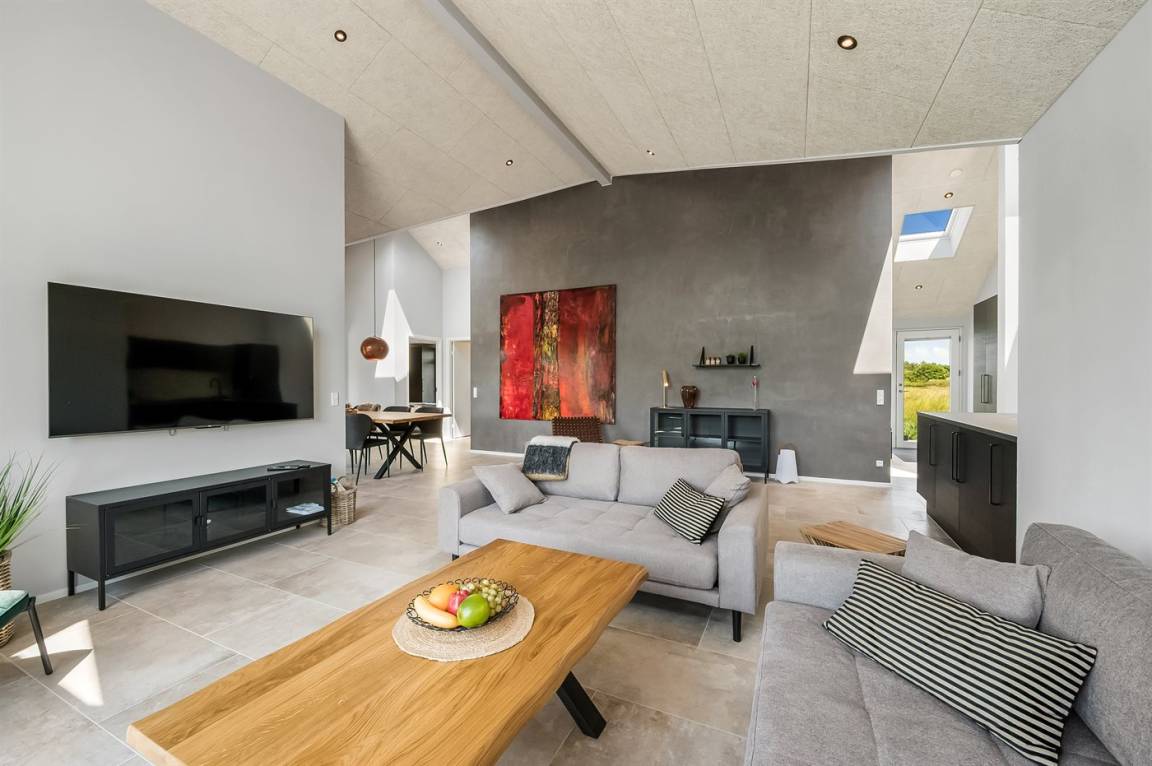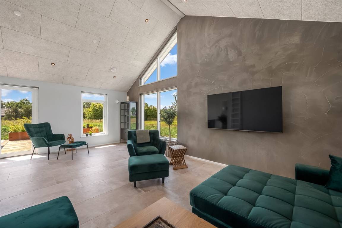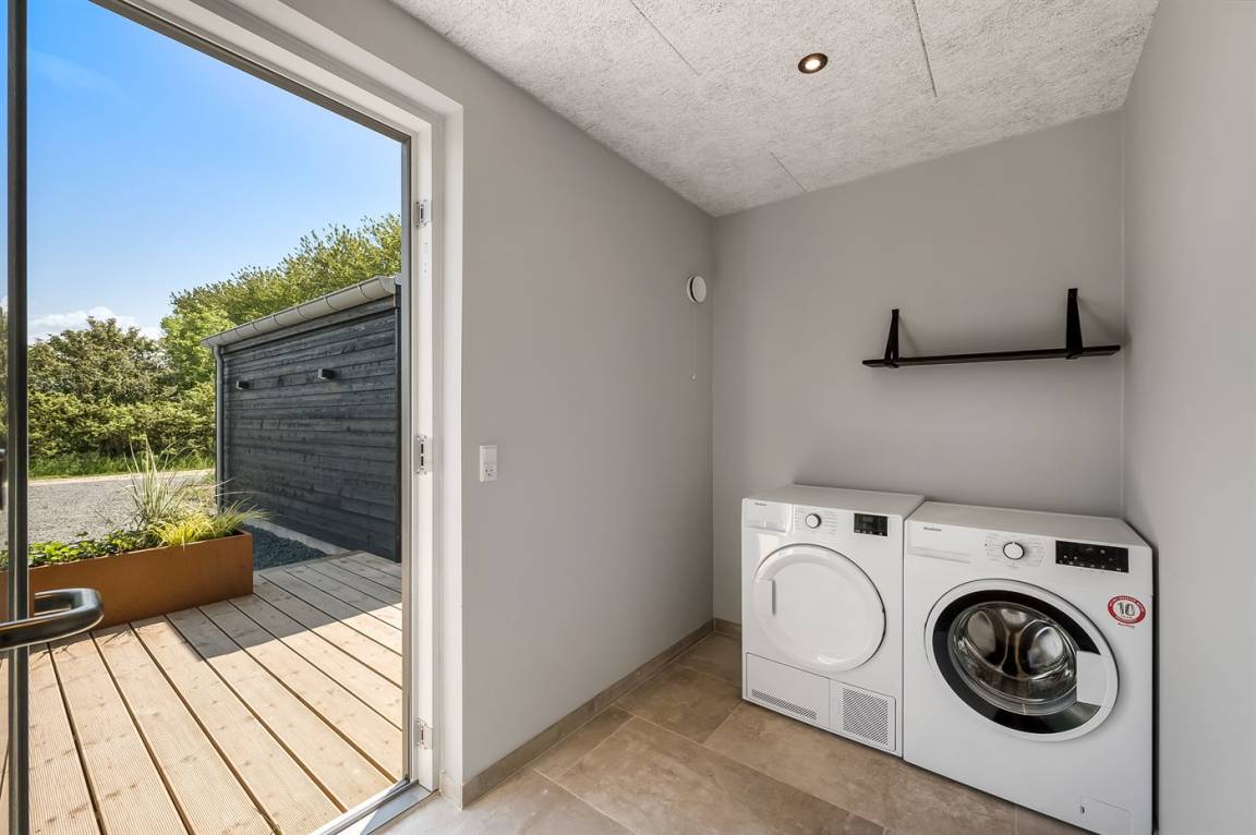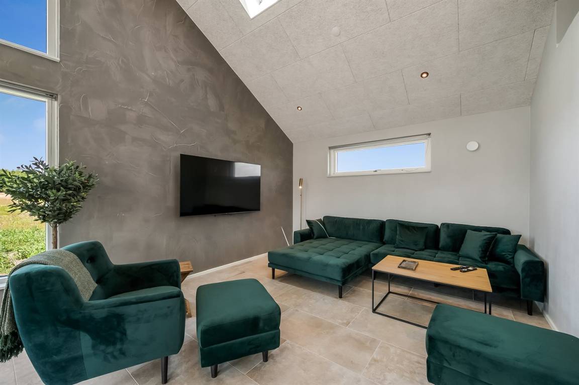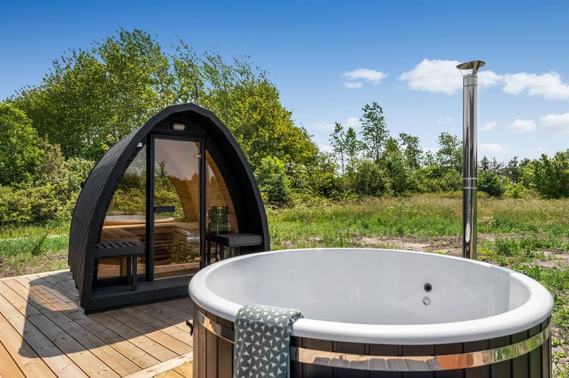 Ein schönes Ferienhaus mit einem Aktivitätsraum und einem fantastischen Außengelände mit großem Hot Tub und Außensauna. Das Haus liegt in der Nähe vom Fjord und dem Hafen von Stauning. Das Haus ist mit einem offenen Obergeschoss eingerichtet – hier findet man 2 der insgesamt 8 Schlafplätze.