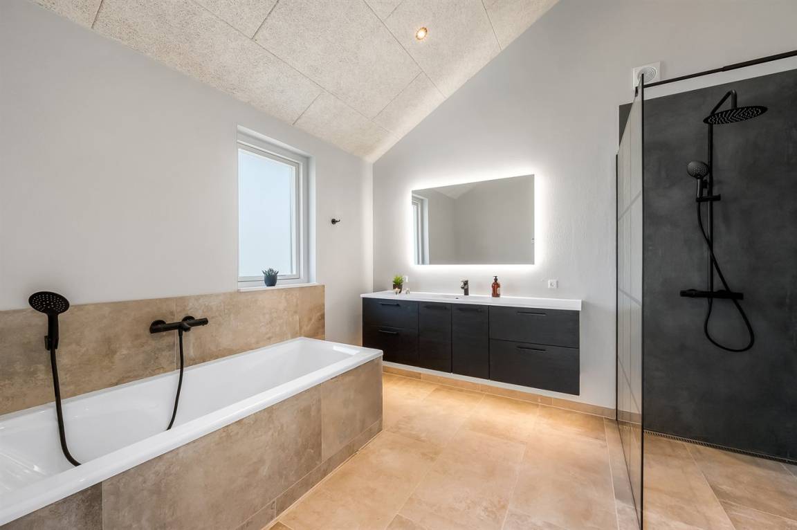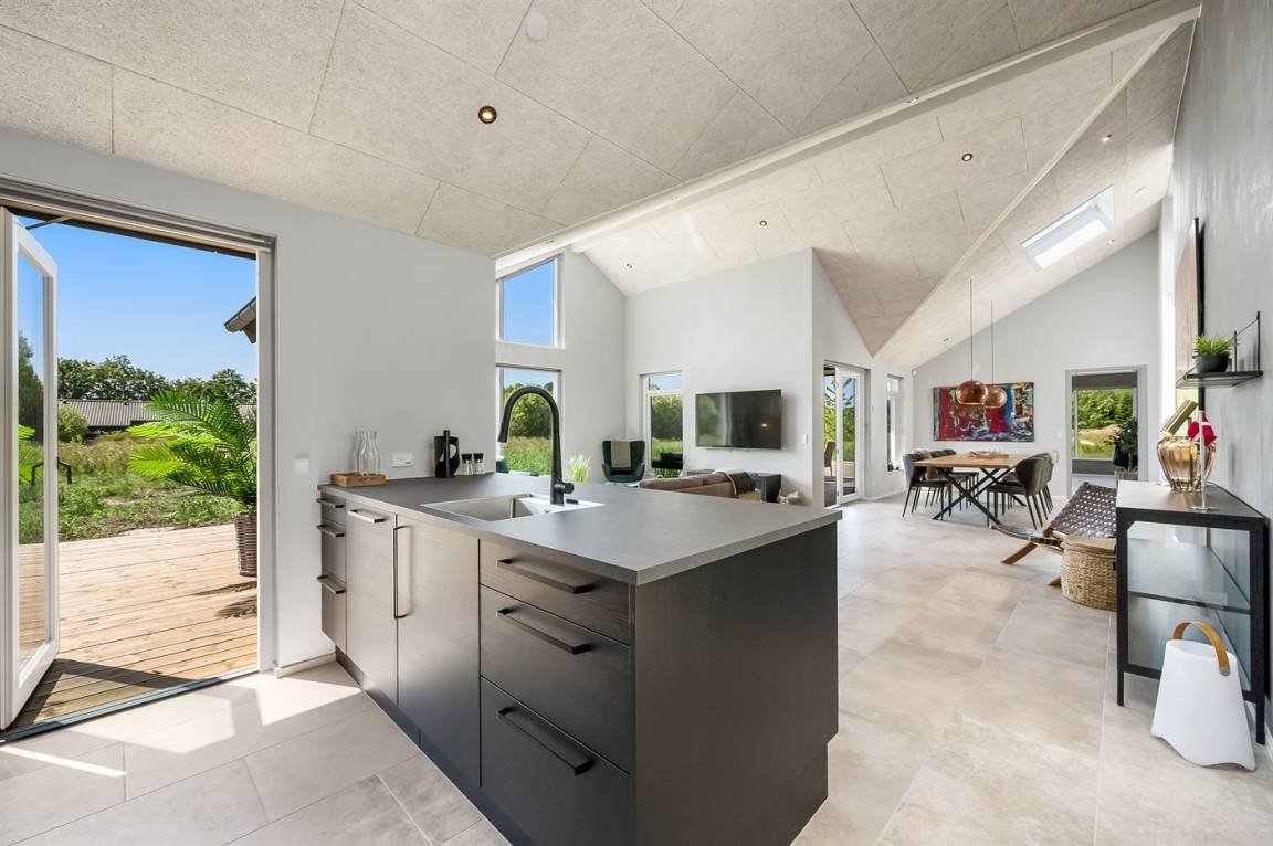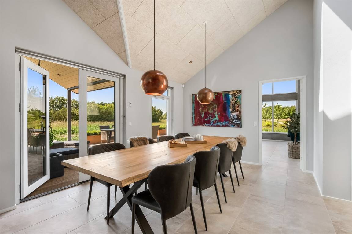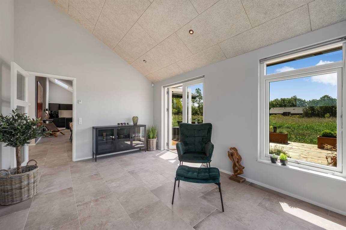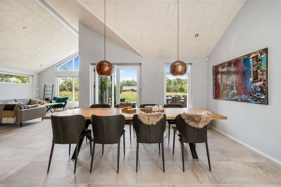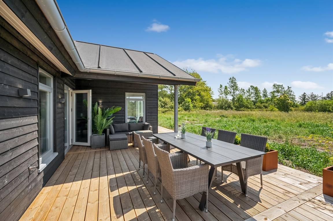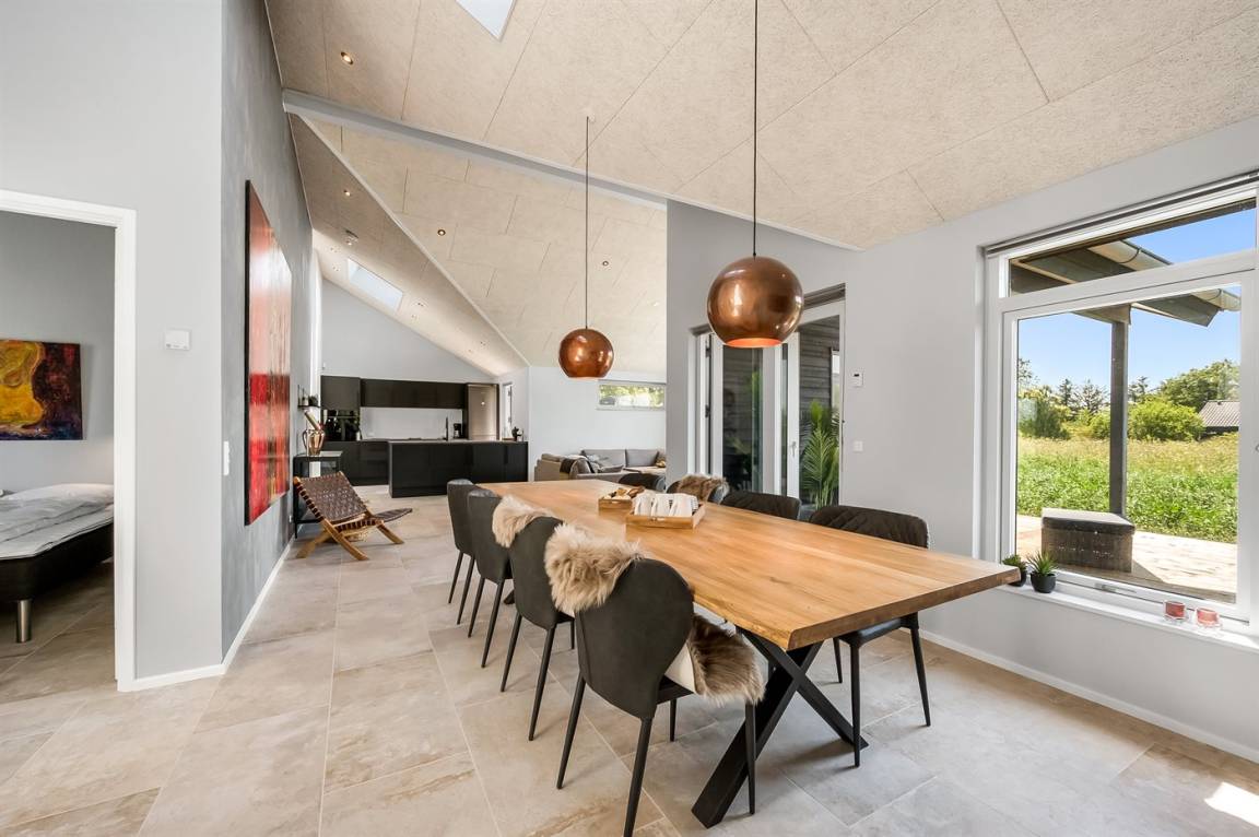 Ein schönes Ferienhaus mit einem Aktivitätsraum und einem fantastischen Außengelände mit großem Hot Tub und Außensauna. Das Haus liegt in der Nähe vom Fjord und dem Hafen von Stauning. Das Haus ist mit einem offenen Obergeschoss eingerichtet – hier findet man 2 der insgesamt 8 Schlafplätze.