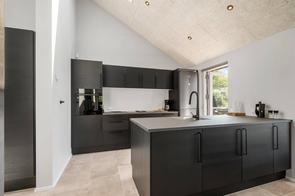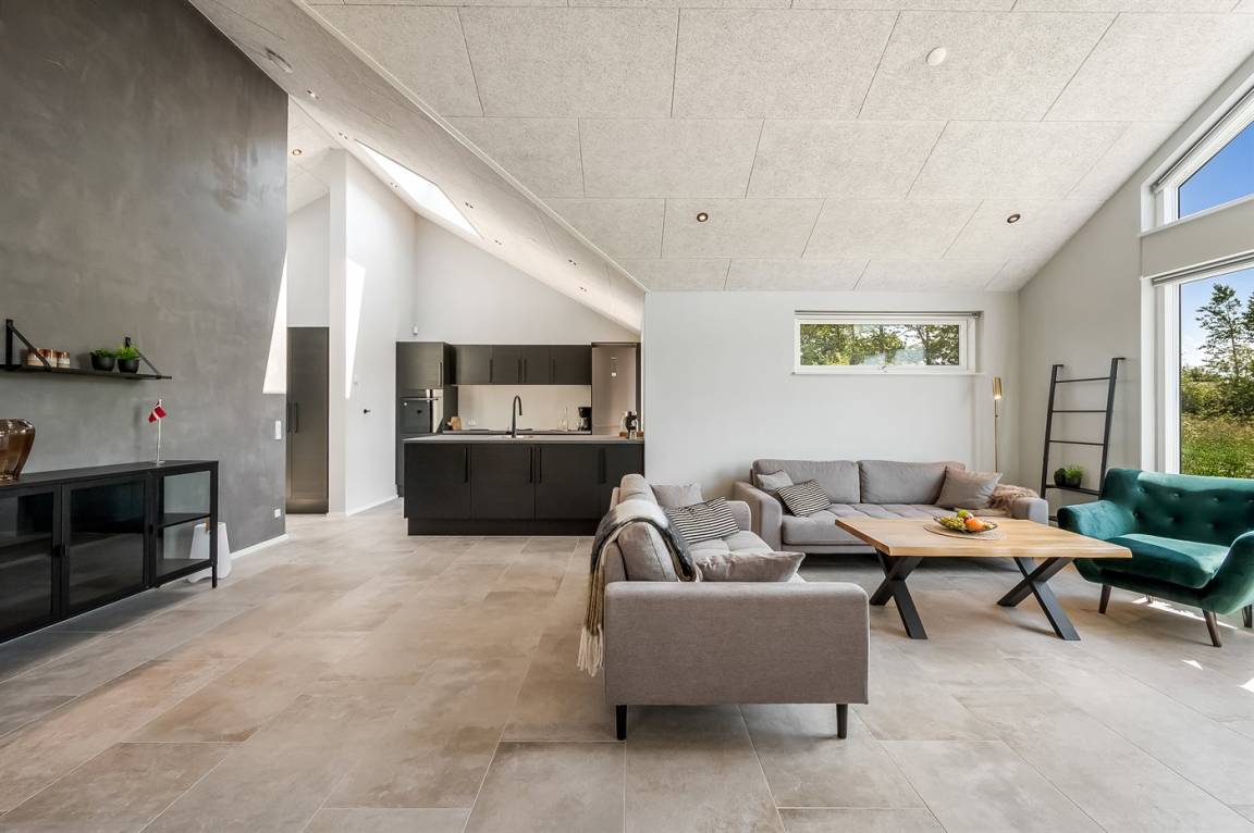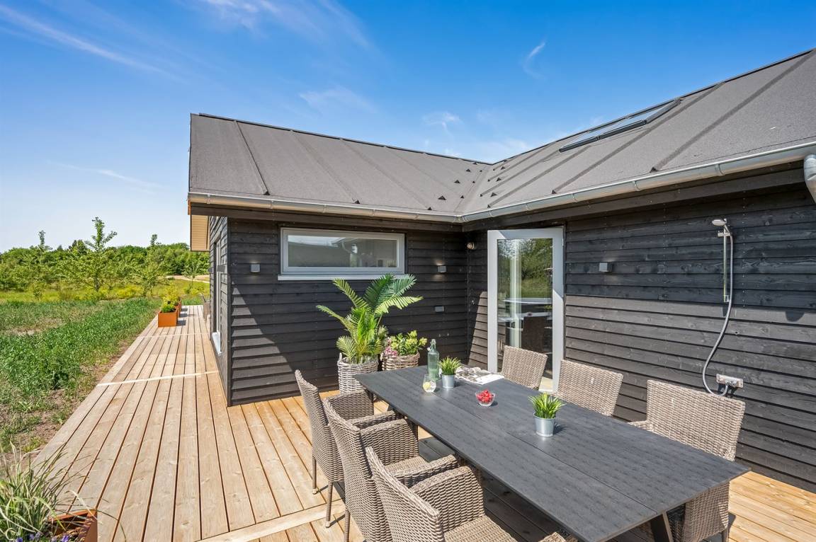 DraußenDie Ferienunterkunft liegt auf einem 1188 m² großen Naturgrundstück. Die Entfernung zum Fjord beträgt 500 m. Die nächste Einkaufsmöglichkeit liegt 700 m entfernt. Es steht ein offenes Terrassenareal zur Verfügung. Außerdem gibt es überdachte Terrasse. Schaukel. Außensauna. Außendusche. Parkplatz auf dem Grundstück.