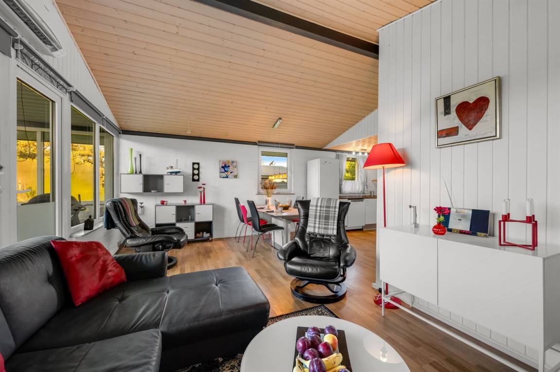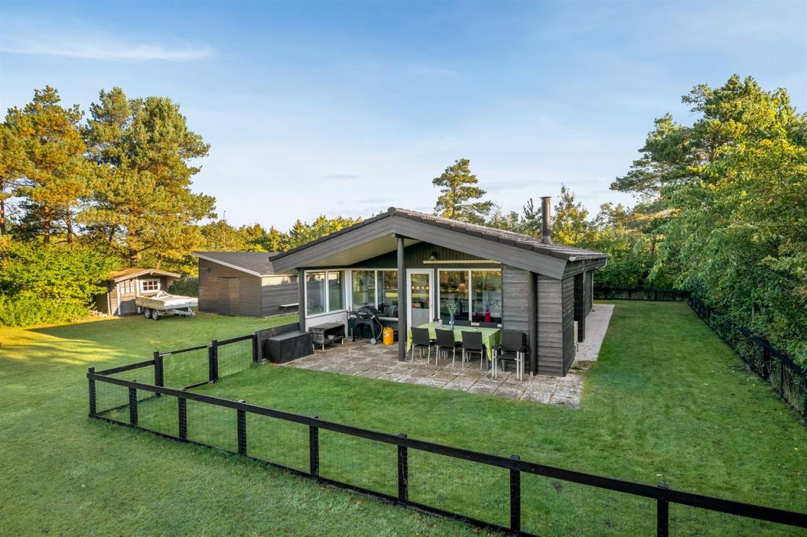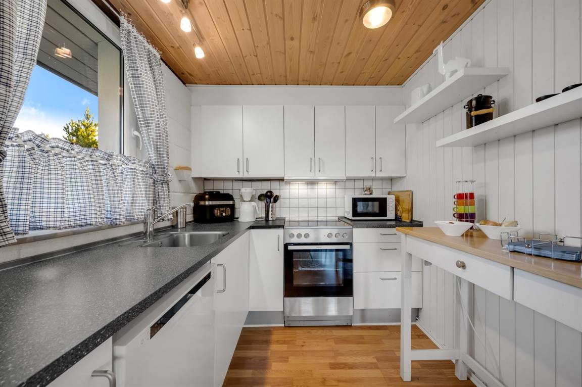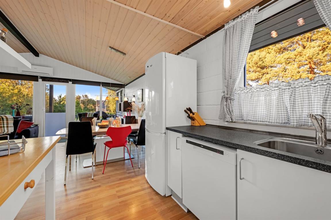 DraußenDie Ferienunterkunft liegt auf einem 1165 m² großen Naturgrundstück. Die Entfernung zum Fjord beträgt 400 m. Die nächste Einkaufsmöglichkeit liegt 6000 m entfernt. Es steht ein offenes Terrassenareal zur Verfügung. Außerdem gibt es überdachte Terrasse. Zutritt zu einem Wintergarten. Schaukel. Sandkasten. Spielturm. Rutsche. Die Entfernung zu einem Spielplatz beträgt 300 m.