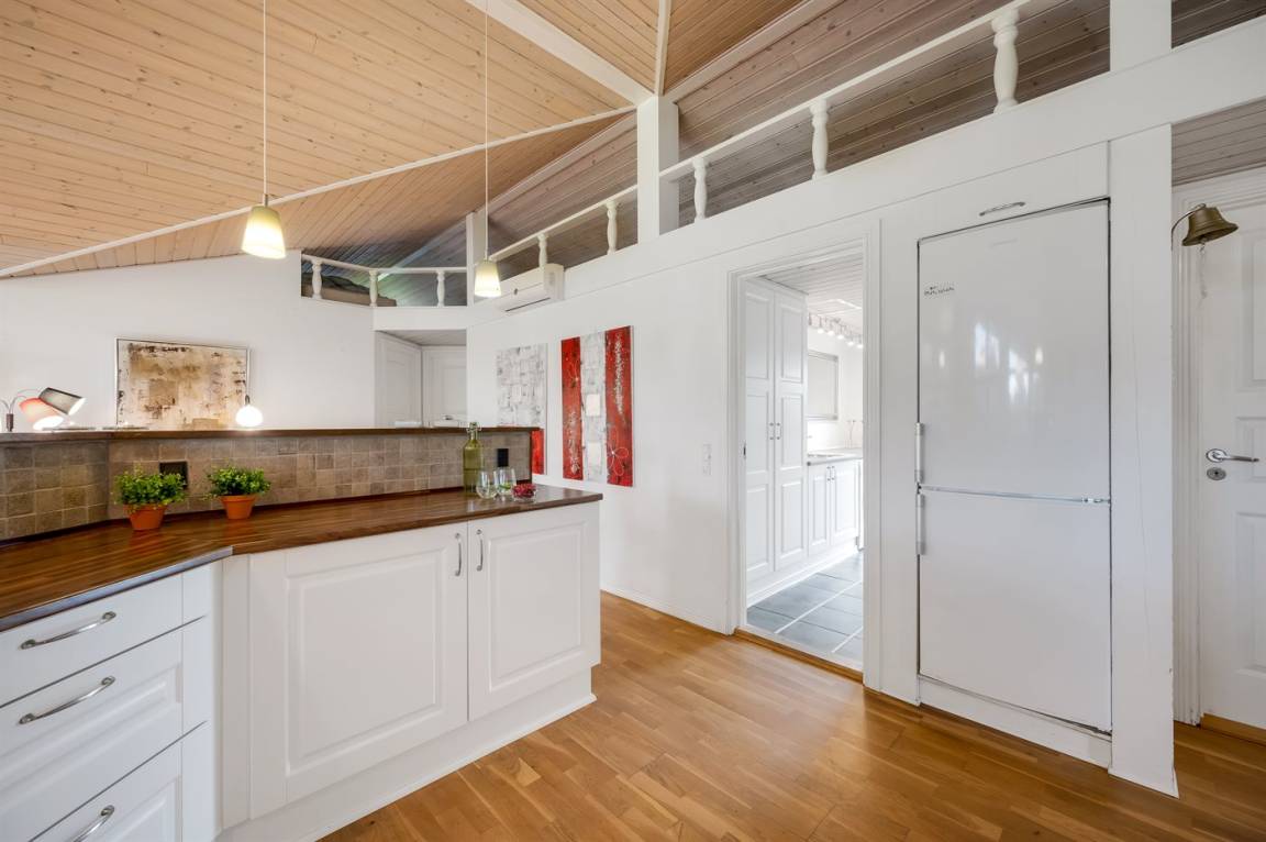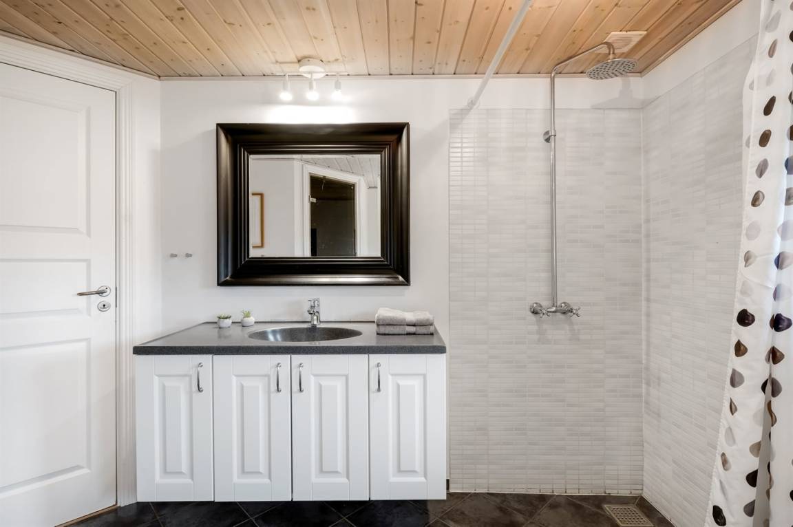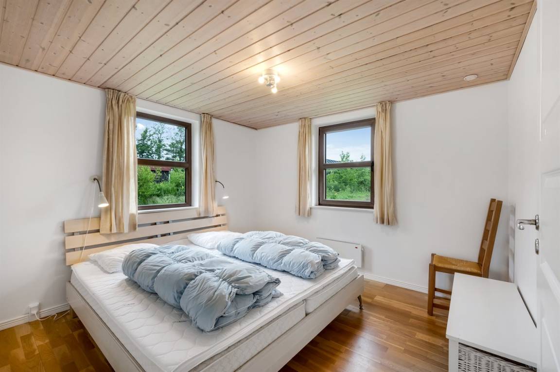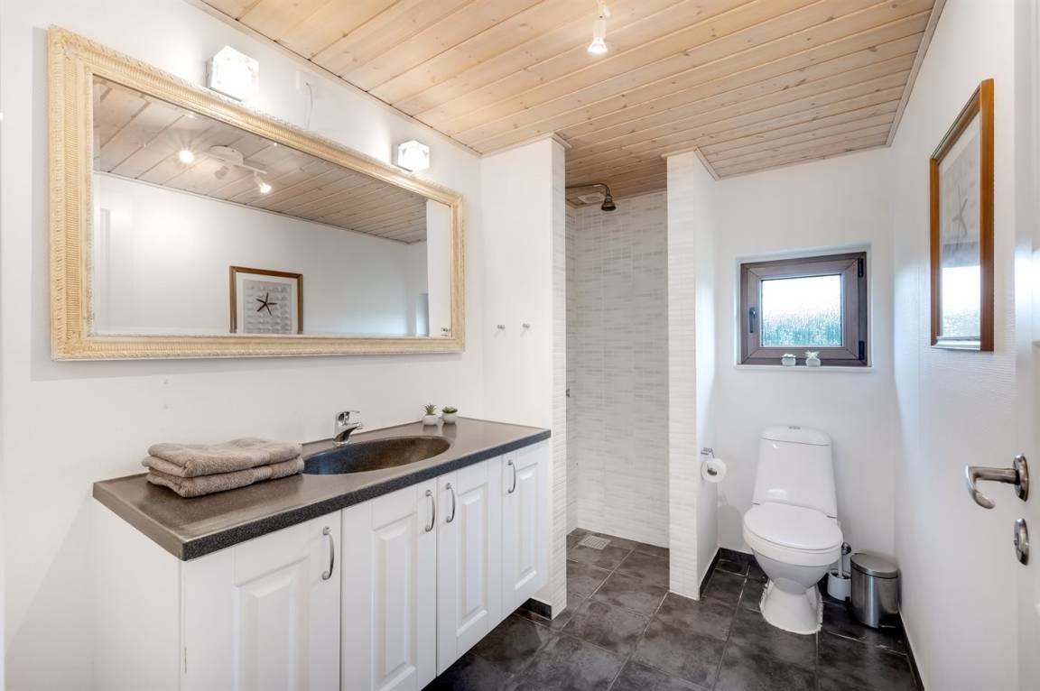 DraußenDie Ferienunterkunft liegt auf einem 1050 m² großen Naturgrundstück. Die Entfernung zum Fjord beträgt 300 m. Die nächste Einkaufsmöglichkeit liegt 4000 m entfernt. Es steht ein 40 m² Terrassenareal zur Verfügung. Außerdem gibt es 15 m² überdachte Terrasse. Geräteraum. Parkplatz auf dem Grundstück.