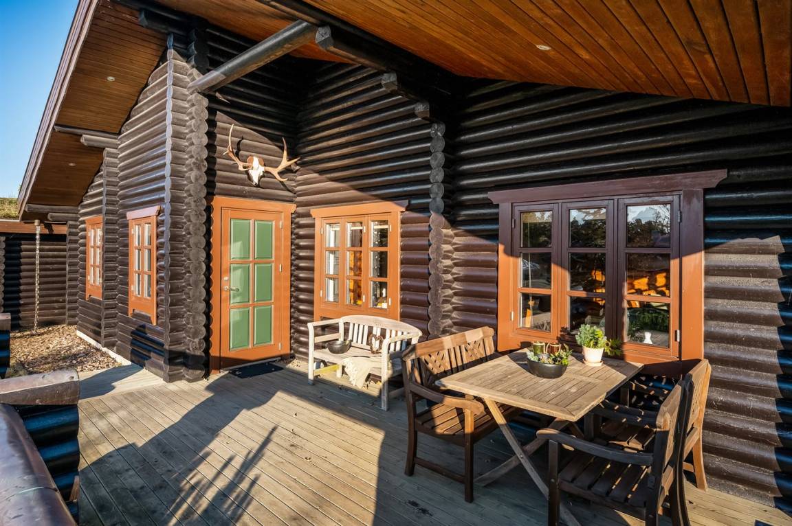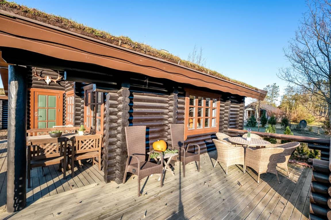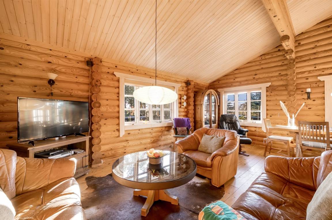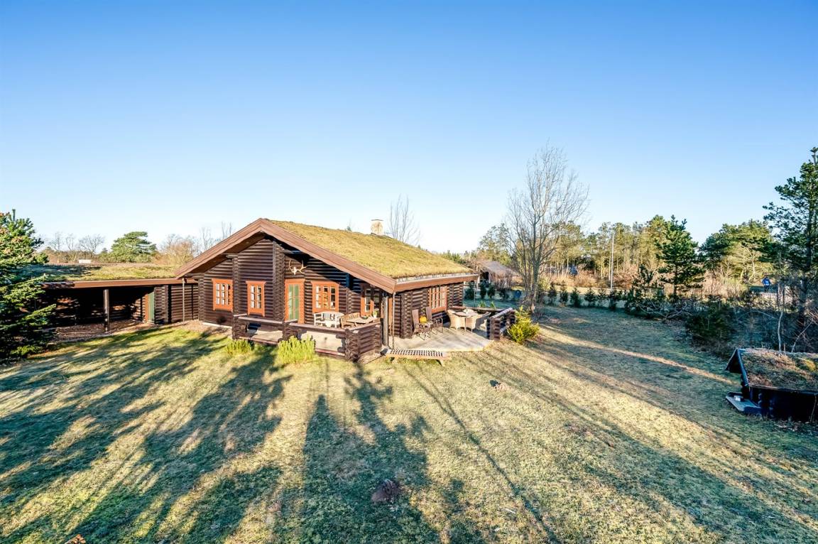 DraußenDie Ferienunterkunft liegt auf einem 1200 m² großen Naturgrundstück. Die Entfernung zum Fjord beträgt 300 m. Die nächste Einkaufsmöglichkeit liegt 4000 m entfernt. Außerdem gibt es 20 m² überdachte Terrasse. Geräteraum. Es steht ein Carport zur Verfügung.