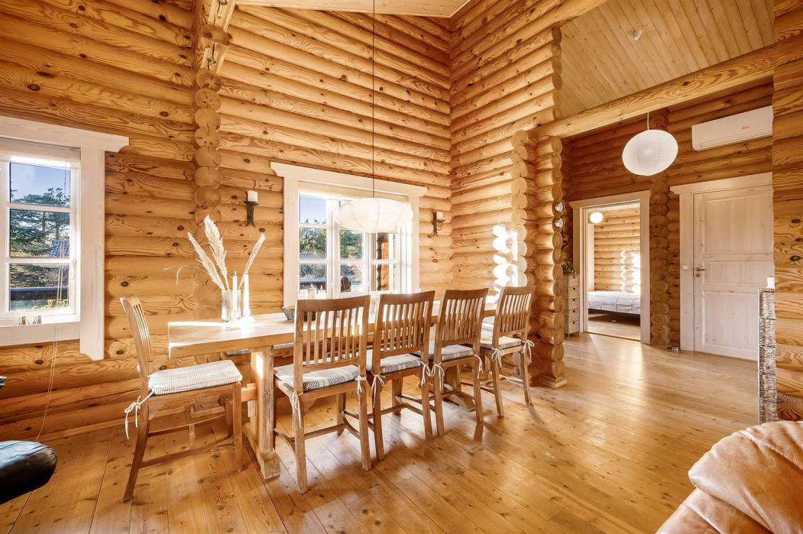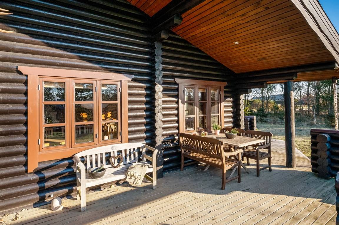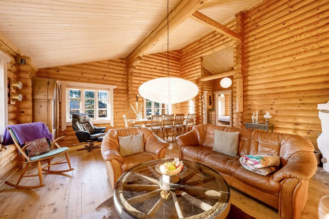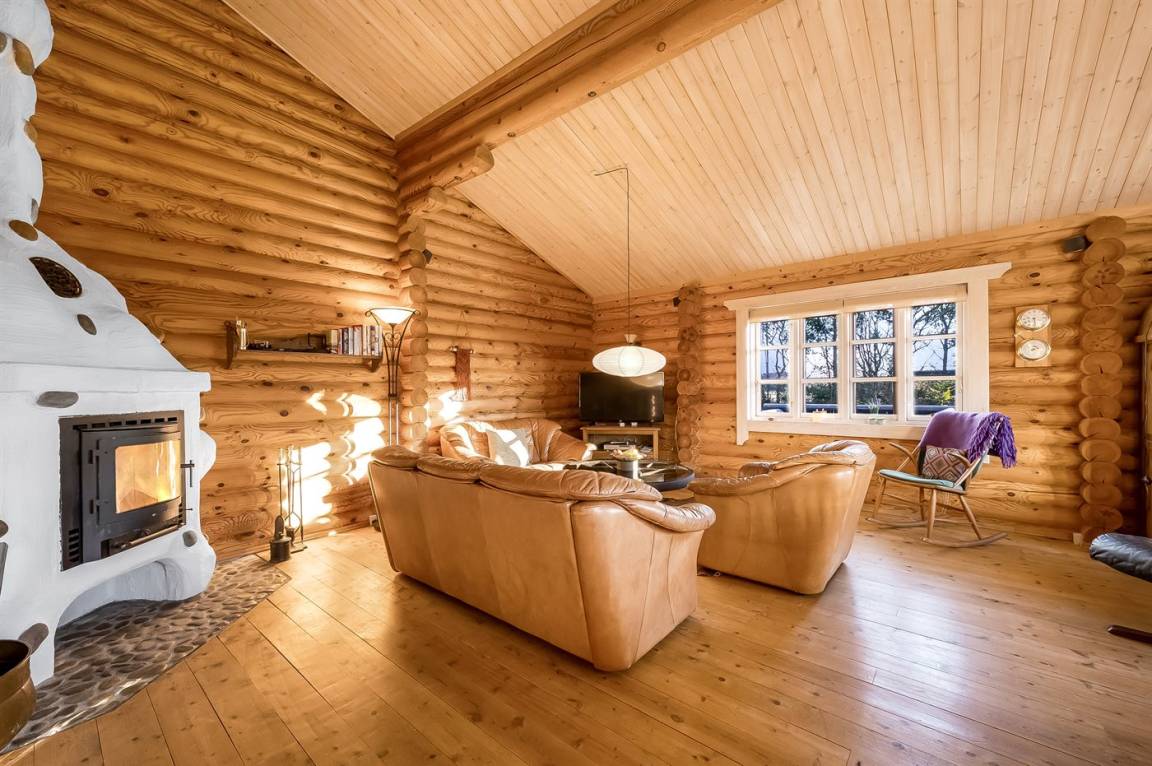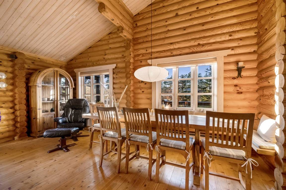 DraußenDie Ferienunterkunft liegt auf einem 1200 m² großen Naturgrundstück. Die Entfernung zum Fjord beträgt 300 m. Die nächste Einkaufsmöglichkeit liegt 4000 m entfernt. Außerdem gibt es 20 m² überdachte Terrasse. Geräteraum. Es steht ein Carport zur Verfügung.
