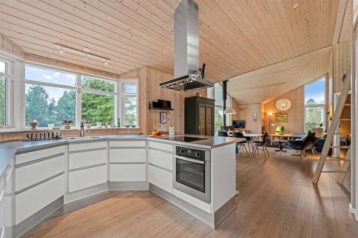 Das Ferienhaus verfügt über einen durchdachten Grundriss, der eine optimale Raumausnutzung im ganzen Haus gewährleistet. Die Wohnküche wird während des Urlaubs ganz sicher zum natürlichen Mittelpunkt für alle.