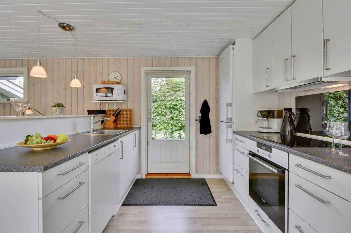 DraußenDie Ferienunterkunft liegt auf einem 1200 m² großen Naturgrundstück. Die Entfernung zum Fjord beträgt 400 m. Die nächste Einkaufsmöglichkeit liegt 1000 m entfernt. Es steht ein 50 m² Terrassenareal zur Verfügung. Außerdem gibt es 18 m² überdachte Terrasse. Geräteraum. Schaukel. Sandkasten. Es steht ein Grill zur Verfügung. Parkplatz auf dem Grundstück.