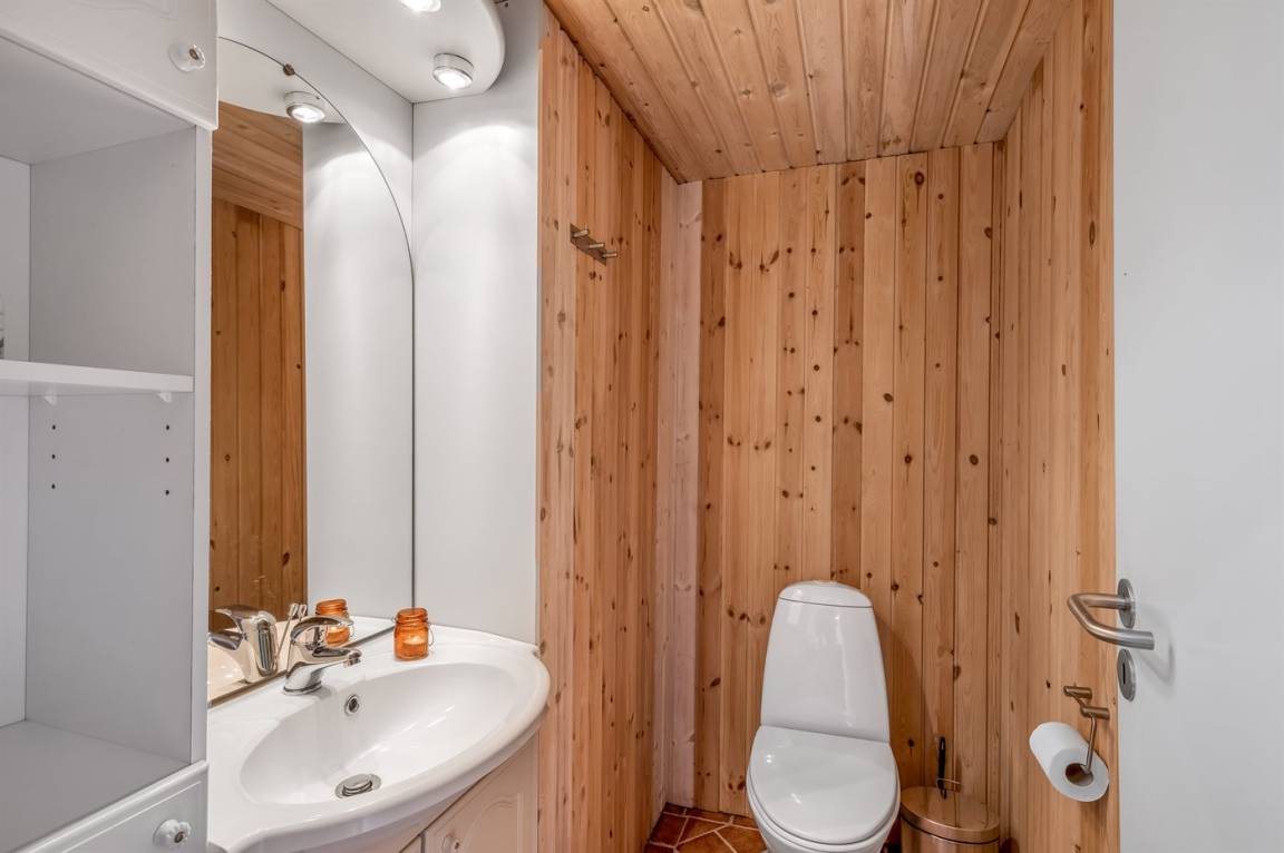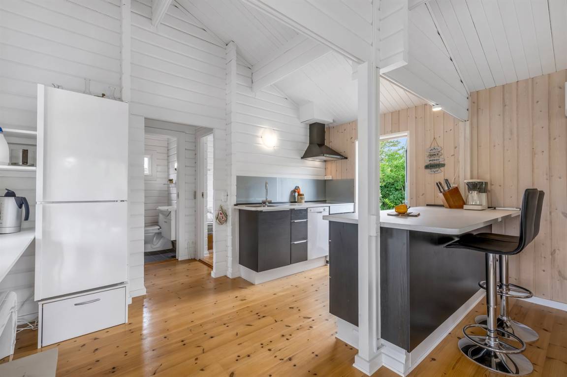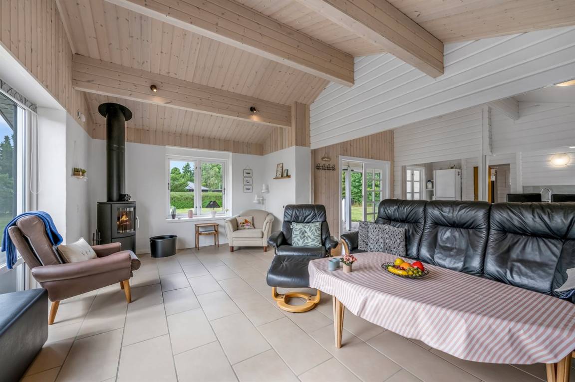 DraußenDie Ferienunterkunft liegt auf einem 1008 m² großen Naturgrundstück. Die Entfernung zum Fjord beträgt 500 m. Die nächste Einkaufsmöglichkeit liegt 6000 m entfernt. Es steht ein offenes Terrassenareal zur Verfügung. Die Entfernung zu einem Spielplatz beträgt 300 m.Lagerfeuerstelle. Es steht ein Carport zur Verfügung. Parkplatz auf dem Grundstück.