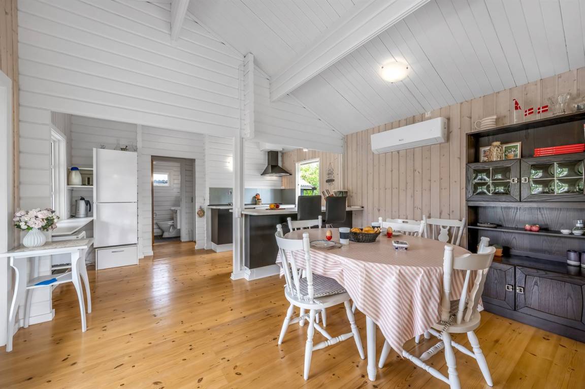 Das Ferienhaus eignet sich für 6 Personen. 2 der Schlafplätze eignen sich jedoch nur für größere Kinder (4-11 Jahre). Die Ferienunterkunft hat eine Wohnfläche von 75 m² und wurde 1974 gebaut. 2007 wurde die Ferienunterkunft teilweise renoviert. Es ist erlaubt 2 Haustiere mitzubringen. In der Ferienunterkunft ist eine energiesparende Luft zu Luft Wärmepumpe installiert. Fußbodenheizung im Wohnzimmer. Tiefkühlmöglichkeit mit 50 Liter Nutzinhalt. Es gibt außerdem einen Kaminofen.