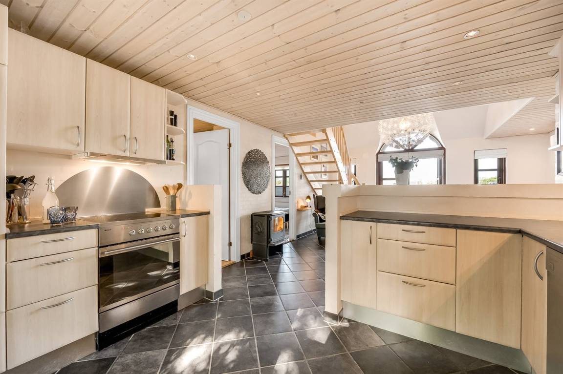 DraußenDie Ferienunterkunft liegt auf einem 2700 m² großen Naturgrundstück. Die Entfernung zum Fjord beträgt 250 m. Die nächste Einkaufsmöglichkeit liegt 400 m entfernt. Es steht ein 50 m² Terrassenareal zur Verfügung. Parkplatz auf dem Grundstück.