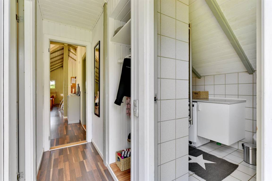 DraußenDie Ferienunterkunft liegt auf einem 1150 m² großen Naturgrundstück. Die Entfernung zum Fjord beträgt 100 m. Die nächste Einkaufsmöglichkeit liegt 6000 m entfernt. Es steht ein 15 m² Terrassenareal zur Verfügung. Außerdem gibt es 8 m² überdachte Terrasse. Geräteraum. Parkplatz auf dem Grundstück.