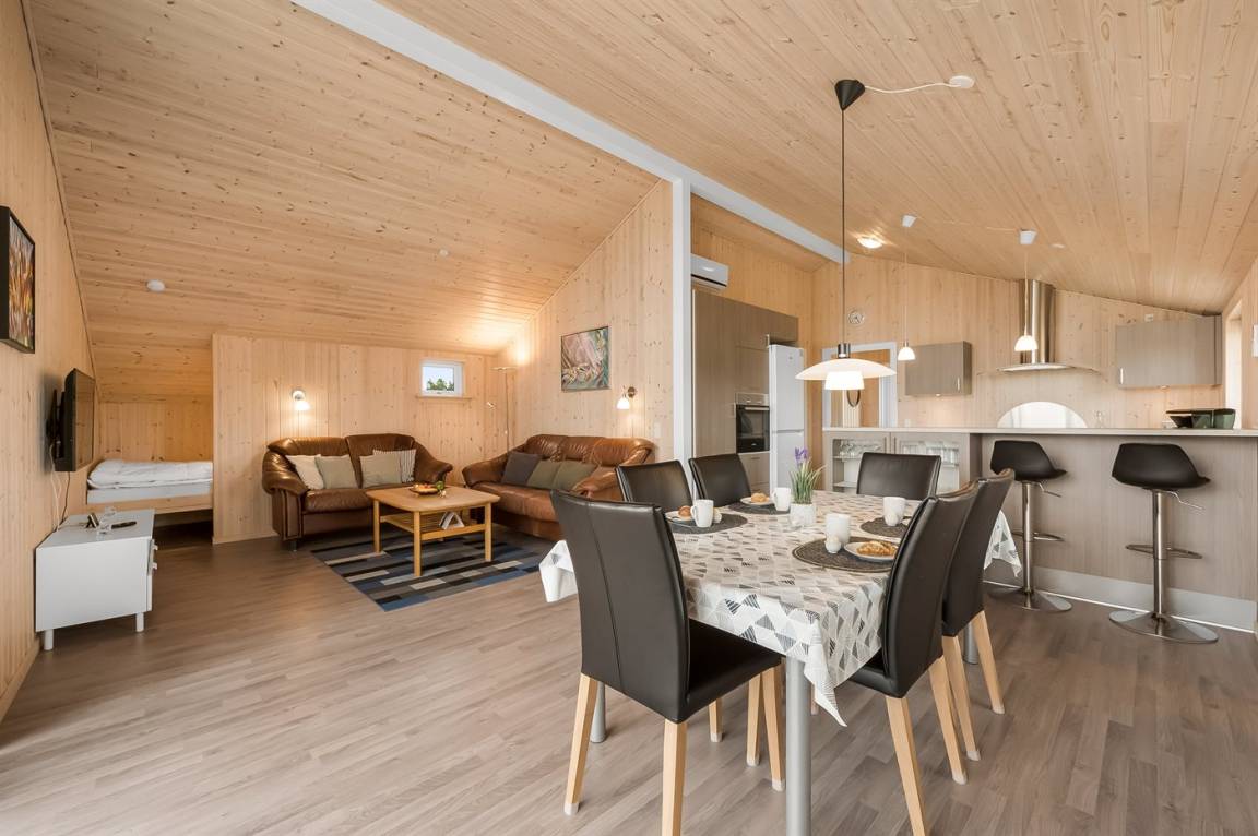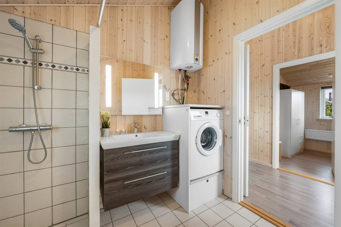 DraußenDie Ferienunterkunft liegt auf einem 1057 m² großen Naturgrundstück. Die Entfernung zum Fjord beträgt 500 m. Die nächste Einkaufsmöglichkeit liegt 5000 m entfernt. In einem Abstand von 10000 m gibt es einen Golfplatz. Es steht ein 18 m² Terrassenareal zur Verfügung. Außerdem gibt es 9 m² überdachte Terrasse. Geräteraum. Sandkasten. Parkplatz auf dem Grundstück.