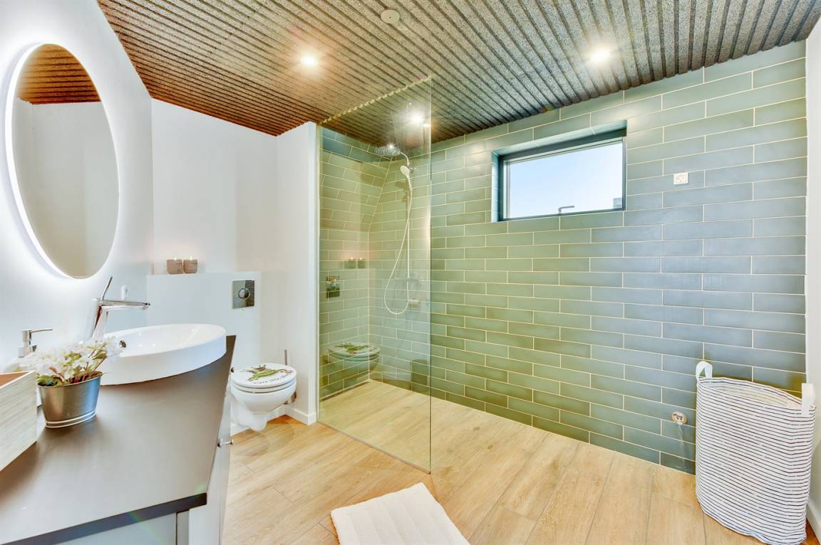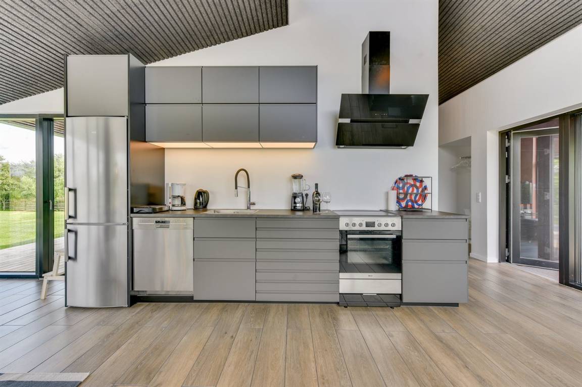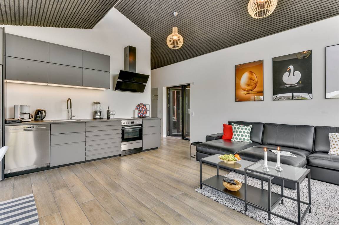 DraußenDie Ferienunterkunft liegt auf einem 1202 m² großen Naturgrundstück. Die Entfernung zum Meer beträgt 25000 m. Die Entfernung zum Fjord beträgt 250 m. Die nächste Einkaufsmöglichkeit liegt 900 m entfernt. In einem Abstand von 7000 m gibt es einen Golfplatz. Es steht ein 80 m² Terrassenareal zur Verfügung. Außerdem gibt es 24 m² überdachte Terrasse. Trampolin. Parkplatz auf dem Grundstück.