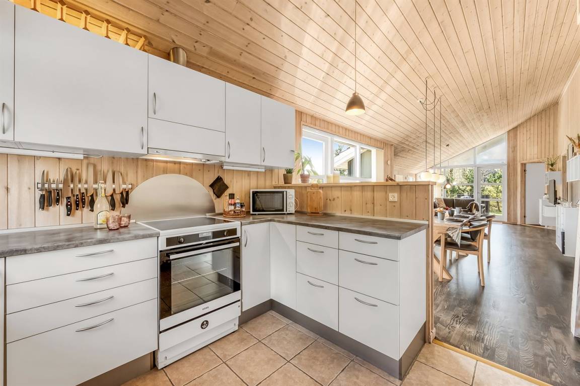 DraußenDie Ferienunterkunft liegt auf einem 1016 m² großen Naturgrundstück. Die Entfernung zum Fjord beträgt 300 m. Die nächste Einkaufsmöglichkeit liegt 4000 m entfernt. In einem Abstand von 6000 m gibt es einen Golfplatz. Es steht ein 30 m² Terrassenareal zur Verfügung. Außerdem gibt es 8 m² überdachte Terrasse. Davon insgesamt 30 m² geschlossene Terrasse. Geräteraum.Lagerfeuerstelle. Parkplatz auf dem Grundstück.