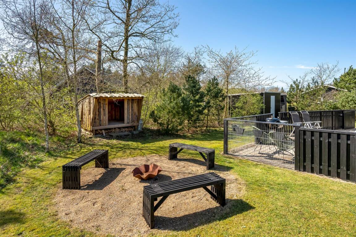 Dieses herrliche Ferienhaus liegt in ruhiger Umgebung, wo du die Ruhe und Frieden der Natur genießen kannst. Der Außenbereich bietet ein einzigartiges Erlebnis mit einem Unterstand und einem gemütlichen Lagerfeuerplatz, perfekt für das Zusammensein von Familie und Freunden um das Feuer herum.