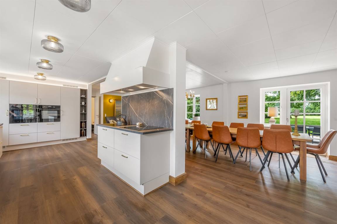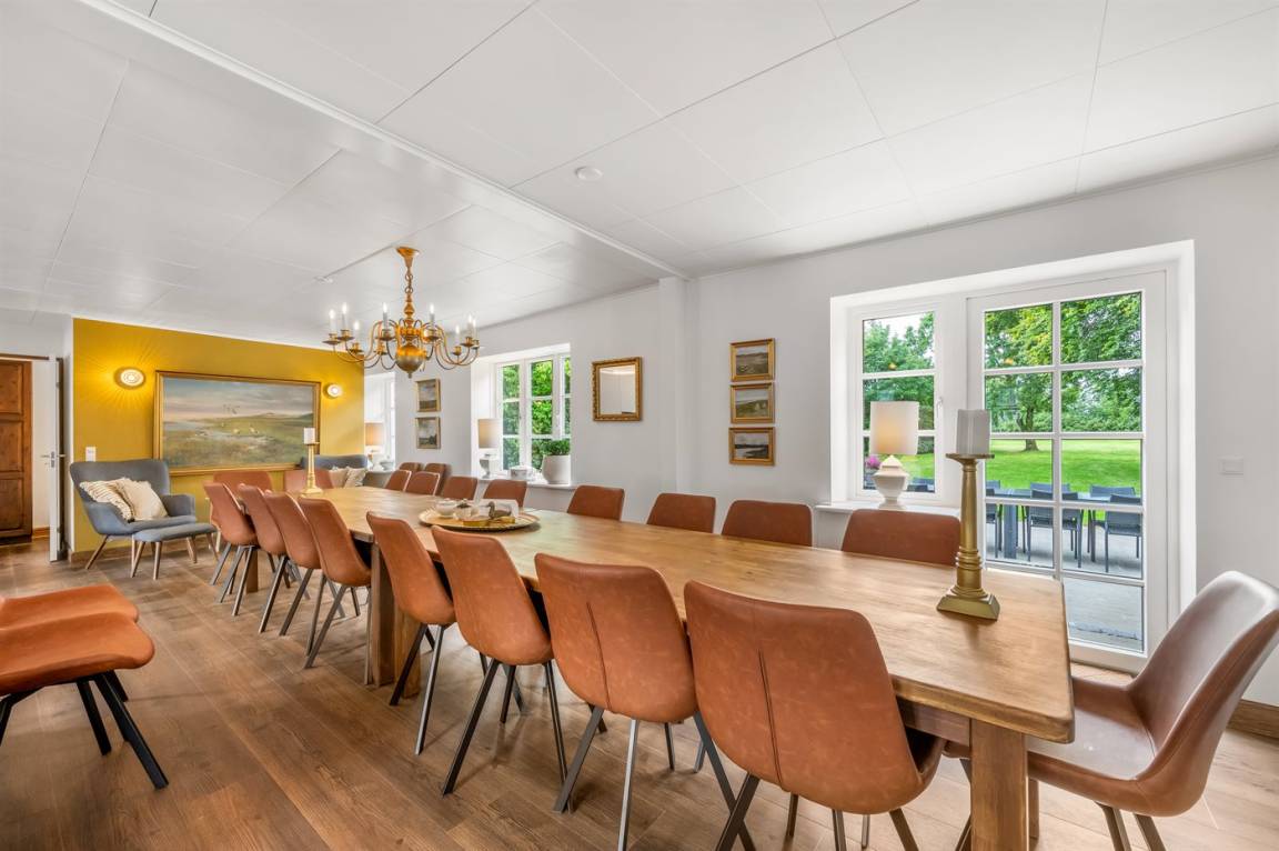 Das geräumige Esszimmer mit Platz für 24 Personen ist offen mit der gut ausgestatteten Küche verbunden.