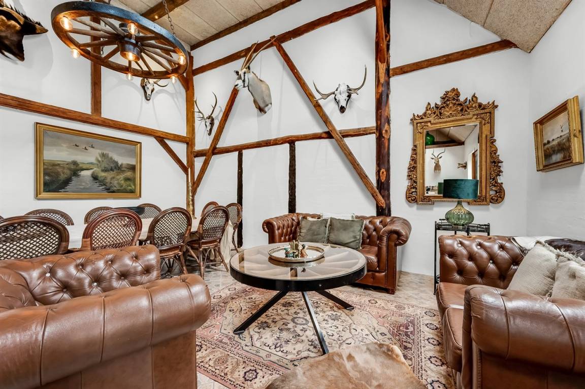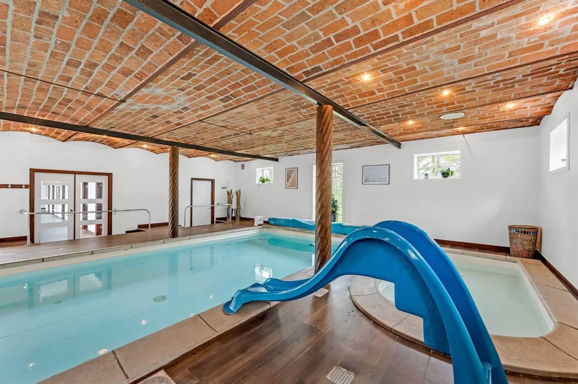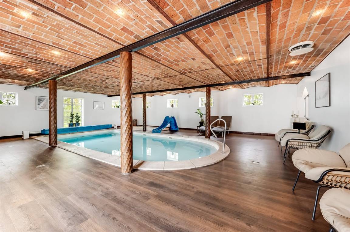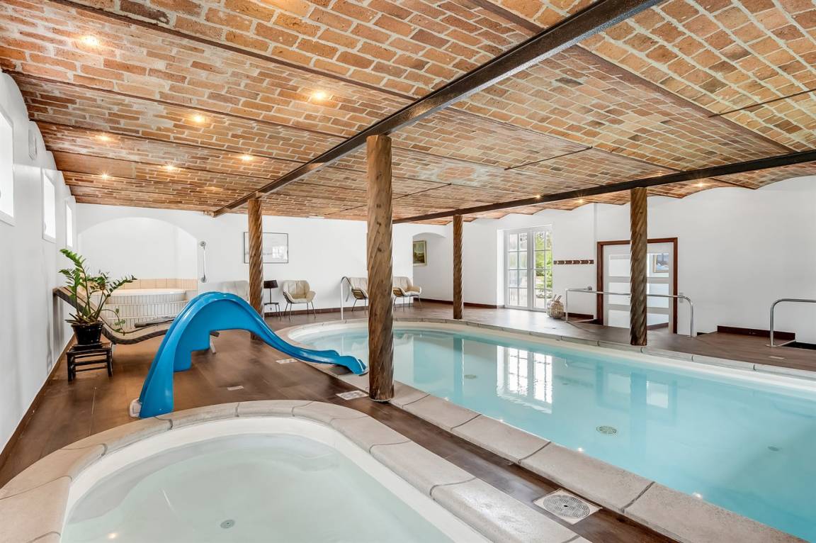 Die sichtbaren Holzbalken, die wunderschönen Steinböden und die gewölbte Decke im Poolbereich verleihen dem Haus eine warme und rustikale Atmosphäre.