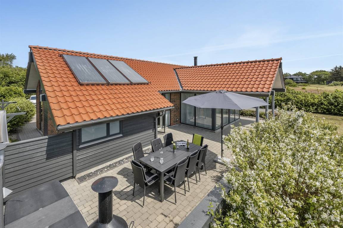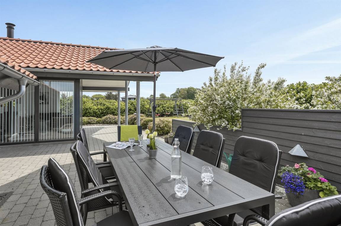 Herrliches Ferienhaus mit geschmackvoller Einrichtung auf einem äußerst gepflegten Grundstück gelegen. Ein großes, schönes und windgeschütztes Terrassenareal mit verschiedenen Gartenmöbeln umgibt das Haus - hier können Sie sich so richtig entspannen und den ganzen Tag hindurch die Sonne genießen. Großes offenes Obergeschoss mit 2 Matratzen - hier können es sich die größeren Kinder so richtig gemütlich machen.